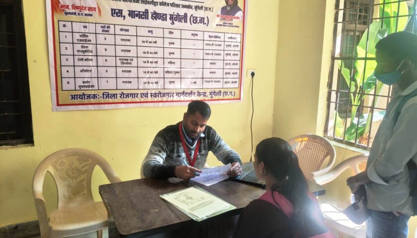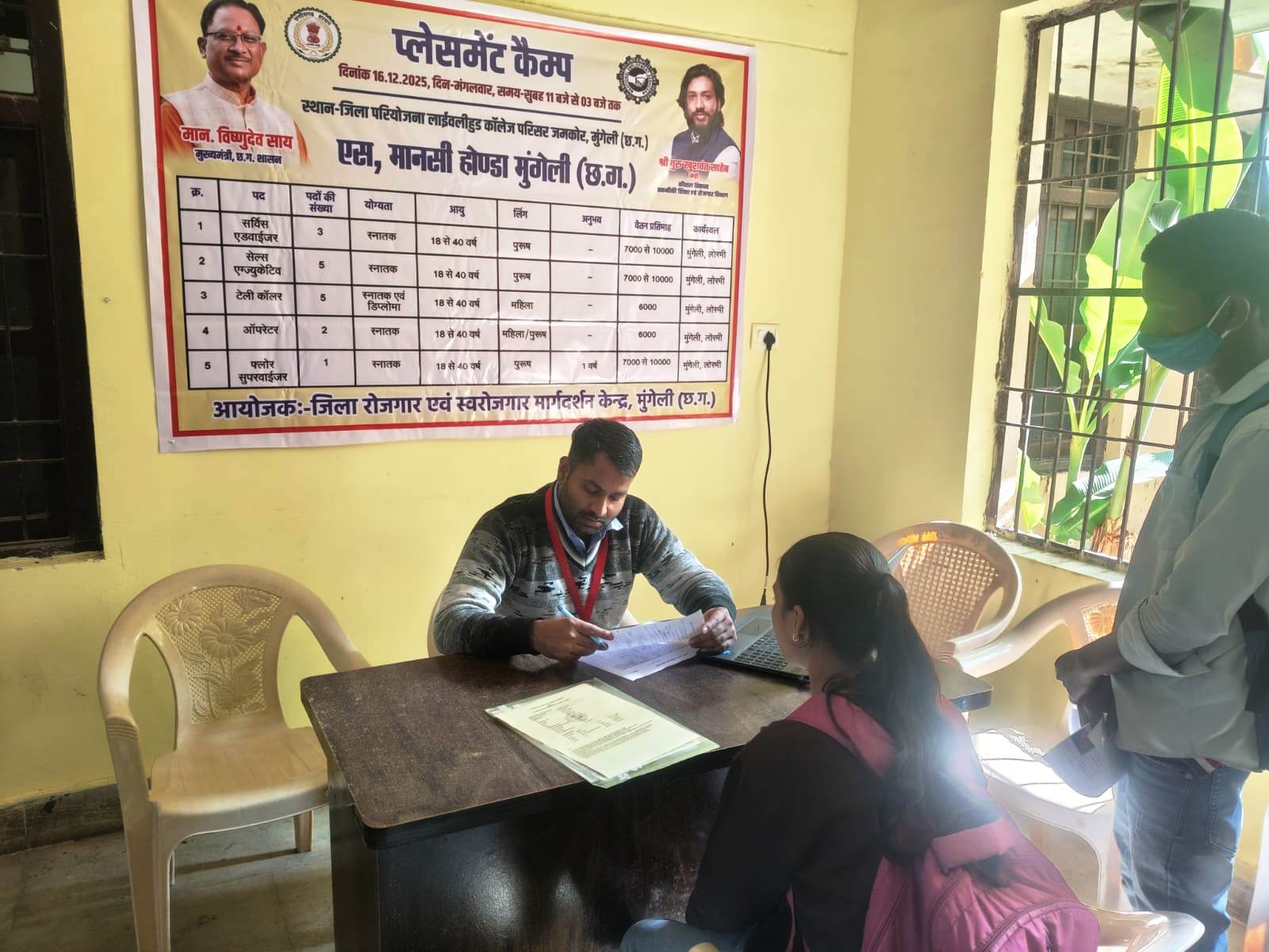 मुंगेली, कुणाल सिंह ठाकुर। मुंगेली जिले के शिक्षित बेरोजगार युवाओं को रोजगार के अवसर प्रदान करने की दिशा में महत्वपूर्ण पहल करते हुए जिला रोजगार कार्यालय द्वारा लाईवलीहुड कॉलेज परिसर, जमकोर में प्लेसमेंट कैंप का आयोजन किया गया। इस कैंप का उद्देश्य युवाओं को निजी क्षेत्र में उपलब्ध विभिन्न रोजगार अवसरों से जोड़ना और उनकी कौशल क्षमता के अनुरूप उपयुक्त पदों पर चयन सुनिश्चित करना था। प्लेसमेंट कैंप में 44 आवेदक उपस्थित हुए, इनमें से 12 अभ्यर्थियों का प्रारंभिक रूप से चयन किया गया। द्वितीय साक्षात्कार के उपरांत 07 दिवस के भीतर अंतिम नियुक्ति दी जाएगी। कैम्प में दो निजी कंपनियों/नियोजकों ने भाग लिया, जिन्होंने उपस्थित अभ्यर्थियों का साक्षात्कार लेकर उनकी योग्यता, संप्रेषण कौशल, व्यवहारिक बुद्धिमत्ता और क्षेत्रीय समझ का परीक्षण किया।