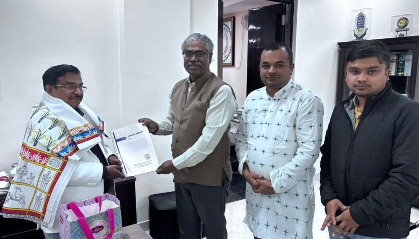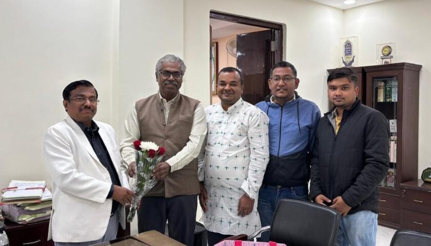 रायपुर, कुणाल सिंह ठाकुर। नववर्ष पर कुशाभाऊ ठाकरे पत्रकारिता एवं जनसंचार विश्वविद्यालय एलुमनी एसोसिएशन के प्रतिनिधिमंडल ने गुरुवार को रायपुर स्थित आयुक्त कार्यालय में केटीयू के कुलपति एवं रायपुर संभाग के आयुक्त महादेव कावरे (आईएएस) से शिष्टाचार भेंट की। भेंट के दौरान एलुमनी प्रतिनिधिमंडल ने एसोसिएशन की वार्षिक रिपोर्ट-2025 सौपी तथा नववर्ष की शुभकामनाएं दीं।