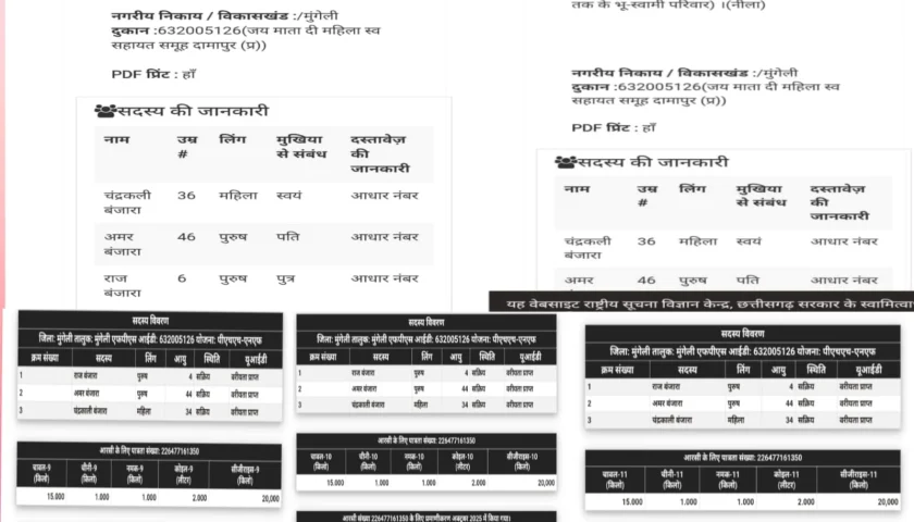 मुंगेली, कुणाल सिंह ठाकुर। खाद्य सुरक्षा कानून, शासन के नियम और गरीबों के हक़ की खुलेआम धज्जियाँ उड़ाते एक चौंकाने वाला मामला सामने आया है। शासकीय शिक्षिका ने कथित रूप से कूट रचित दस्तावेज, स्वघोषणा पत्र और शपथ पत्र के माध्यम से बीपीएल राशन कार्ड बनवाकर करीब 5 वर्षों तक गरीबों का राशन हड़पती रही और जिम्मेदार विभाग आंख मूंदे बैठे रहे।जानकारी के अनुसार, ग्राम दामापुर (प्र.), आश्रित ग्राम पातालकुंडी, जनपद/ब्लॉक मुंगेली, जिला मुंगेली निवासी चंद्रकली बंजारा, पति अमरदास बंजारा जो शासकीय शिक्षिका हैं के नाम पर बीपीएल राशन कार्ड क्रमांक 226477161350 जारी किया गया।