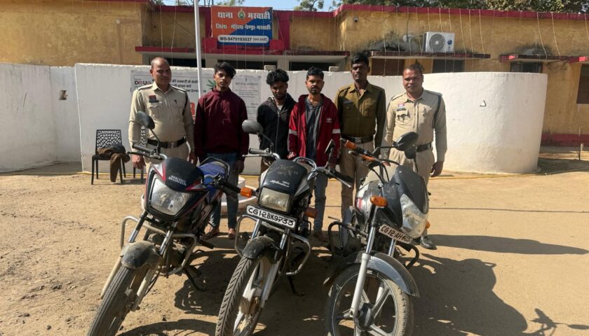 गौरेला–पेंड्रा–मरवाही, कुणाल सिंह ठाकुर। चौकी सिवनी अंतर्गत मोटर सायकल चोरी के एक प्रकरण में पुलिस द्वारा त्वरित एवं प्रभावी कार्रवाई करते हुए एक संगठित चोरी गिरोह का पर्दाफाश कर 3 आरोपियों को गिरफ्तार करते हुए उनके कब्जे से 3 चोरी की मोटर सायकल जप्त की गई है।