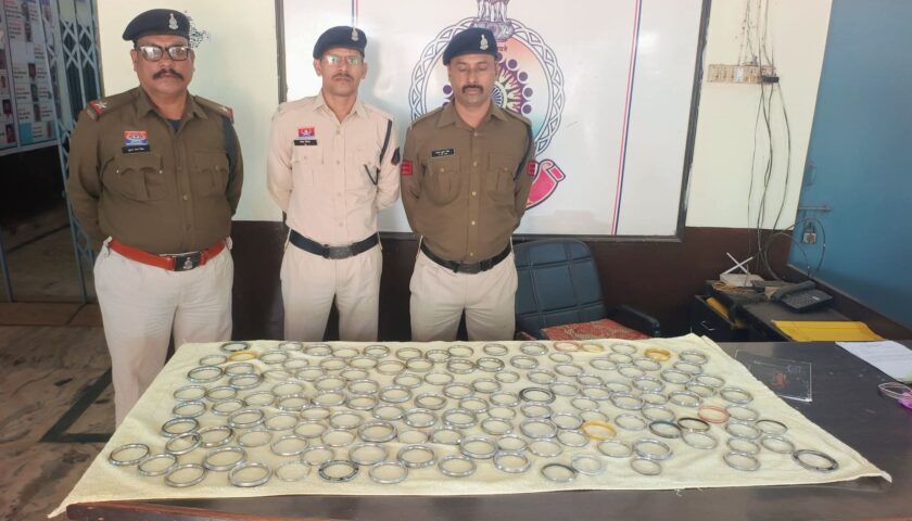 दुर्ग, कुणाल सिंह ठाकुर। दिनांक 18.01.2026 को दुर्ग जिले के थाना नंदिनी क्षेत्र अंतर्गत आयोजित मड़ई मेला, बाजार क्षेत्रों एवं अन्य भीड़-भाड़ वाले सार्वजनिक स्थलों पर शांति, सुरक्षा एवं कानून व्यवस्था बनाए रखने के उद्देश्य से नंदिनी थाना पुलिस द्वारा पर्याप्त पुलिस बल तैनात कर विशेष सघन अभियान संचालित किया गया।अभियान के दौरान यह पाया गया कि कुछ असामाजिक किस्म के युवक बड़े-बड़े लोहे के कड़े पहनकर मड़ई मेला, बाजार एवं सार्वजनिक स्थलों पर अड्डेबाजी करते हुए आम नागरिकों में भय एवं असुरक्षा का वातावरण निर्मित करने का प्रयास कर रहे थे।ऐसे सभी असामाजिक तत्वों को तत्काल चिन्हित कर मौके पर ही लोहे के कड़े उतरवाए गए एवं थाना नंदिनी पुलिस द्वारा अभियान के दौरान लगभग 150 नग लोहे के कड़े जप्त किए गए। संबंधित व्यक्तियों को कड़ी समझाइश दी गई तथा भविष्य में इस प्रकार की गतिविधियों में संलिप्त पाए जाने पर कठोर वैधानिक कार्यवाही किए जाने की स्पष्ट चेतावनी दी गई।दुर्ग पुलिस की इस त्वरित, सख़्त एवं प्रभावी कार्यवाही के परिणामस्वरूप मड़ई मेला, बाजार एवं अन्य भीड़-भाड़ वाले क्षेत्रों में अनुशासन एवं शांति बनी रही तथा आम नागरिकों में सुरक्षा की भावना एवं पुलिस के प्रति विश्वास और अधिक सुदृढ़ हुआ।दुर्ग पुलिस आमजन को आश्वस्त करती है कि मड़ई मेला, बाजार, सार्वजनिक स्थल एवं भीड़-भाड़ वाले क्षेत्रों में अड्डेबाजी, हथियारनुमा वस्तुएँ पहनकर घूमने, भय का वातावरण निर्मित करने अथवा कानून व्यवस्था को चुनौती देने वाले किसी भी व्यक्ति के विरुद्ध आगे भी बिना किसी पूर्व सूचना के सख़्त एवं वैधानिक कार्यवाही निरंतर जारी रहेगी।जनसुरक्षा सर्वोपरि है कानून तोड़ने वालों के लिए कोई ढील नहीं।