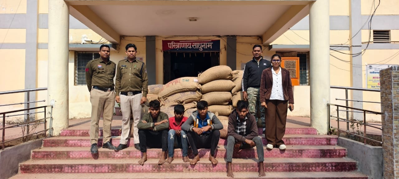 विवेचना के दरमियान अतिरिक्त पुलिस अधीक्षक नवनीत कौर छाबड़ा, मयंक तिवारी से मार्गदर्शन प्राप्त कर अज्ञात आरोपी एवं मशरूका की पतासाजी के दौरान तकनीकी साक्ष्य एवं मुखबीर सूचना पर संदेही आकाश सिंह क्षत्रीय, श्रवण यादव, योगेश साहू, जगदीश प्रसाद साहू एवं एक अपचारी बालक को हिरासत में लेकर तथ्यात्मक पूछताछ करने पर बताये कि दिनांक 15-16.01.2026 के दरम्यानी रात्रि शासकीय उचित मूल्य की दुकान ग्राम चमारी (सोसायटी) के दरवाजा को एक साथ मिलकर धक्का देने पर राशन दुकान के दरवाजा पर लगे कुंडा टूट गया, जिससे सोसायटी अंदर घुसकर जूट बोरी में भरे चांवल 44 बोरी प्रत्येक में 50-50 किलोग्राम भरा हुआ कुल 22 क्विंटल कीमती 52,800 रूपये को चोरी करना स्वीकार करने पर आरोपियों आकाश सिंह क्षत्रीय, श्रवण यादव, योगेश साहू, जगदीश प्रसाद साहू एवं एक अपचारी बालक से 22 क्विंटल चांवल कीमती 52,800 रूपये एवं 01 नग ऑटो कीमती 1,00,000 रूपये जुमला कीमती 1,52,800 रूपये को गवाहों के समक्ष जप्त कर आरोपी 1. आकाश सिंह क्षत्रीय पिता देव सिंह क्षत्री उम्र 20 वर्ष निवासी चमारी (टिंगीपुर), 2. योगेन्द्र साहू उर्फ जानू पिता धनऊराम साहू उम्र 22 वर्ष, 3. जगदीश प्रसाद साहू उर्फ जीवन पिता जलेश्वर प्रसाद साहू उम्र 18 वर्ष, 4. श्रवण यादव पिता मनोज यादव उम्र 20 वर्ष एवं 01 विधि से संघर्षरत् बालक सभी निवासी चमारी (टिंगीपुर) दिनांक 20.01.2026 को गिरफ्तार कर न्यायिक रिमाण्ड पर जेल दाखिल किया गया एवं विधि से संघर्षरत् बालक को बाल संरक्षण गृह भेजा गया। उक्त कार्यवाही मे निरीक्षक कार्तिकेश्वर जांगड़े थाना प्रभारी सिटी कोतवाली मुंगेली, प्र.आर. मनोज ठाकुर, दिलीप साहू, रविकुमार जांगड़े, चंद्रप्रकाश ध्रुव, आरक्षक अजय चंद्राकर, अरूण साहू रवि श्रीवास एवं संजय यादव की भूमिका सराहनीय रही।