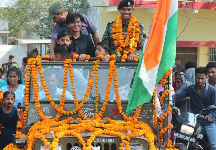 दीपक साहू का चयन बीएसएफ 2024 बैच में हुआ था। चयन के पश्चात उन्होंने लगभग 44 सप्ताह (करीब 11 माह) तक मध्यप्रदेश के सहायक प्रशिक्षण केंद्र, टेकनपुर (ग्वालियर) में अत्यंत कठोर और अनुशासित प्रशिक्षण प्राप्त किया। इस प्रशिक्षण अवधि के दौरान उन्होंने शारीरिक, मानसिक और तकनीकी सभी स्तरों पर स्वयं को तैयार किया, ताकि देश की सीमाओं की सुरक्षा के दायित्व को पूरी निष्ठा और समर्पण के साथ निभा सकें।प्रशिक्षण पूर्ण कर घर वापसी पर महाराणा प्रताप वार्ड पेंडाराकापा सहित आसपास के क्षेत्रों में उत्सव जैसा माहौल रहा। नगरवासियों ने फूल-मालाओं, ढोल-नगाड़ों और डीजे की धुनों के साथ जवान का स्वागत किया। शोभायात्रा नगर के प्रमुख मार्गों से होती हुई निकाली गई, जिसमें देशभक्ति के नारे गूंजते रहे।इस अवसर पर नरेंद्र साहू, यमनराजा सहित सामाजिक कार्यकर्ता और गणमान्य नागरिक शोभायात्रा में शामिल हुए और दीपक साहू को बधाई एवं शुभकामनाएं दीं। वार्ड पार्षद कुलदीप पाटले ने कहा कि दीपक साहू जैसे जवान पूरे क्षेत्र के लिए प्रेरणा हैं, जिनके कारण समाज में देशभक्ति और अनुशासन की भावना मजबूत होती है। परिजनों ने भी इस अवसर पर अपनी खुशी व्यक्त करते हुए कहा कि बेटे की इस उपलब्धि से पूरा परिवार गौरवान्वित है। माता-पिता और परिजनों की आंखों में गर्व और खुशी साफ झलक रही थी। उन्होंने दीपक की सफलता का श्रेय उसके कठिन परिश्रम, अनुशासन और गुरुजनों के मार्गदर्शन को दिया। बताया गया कि प्रशिक्षण पूर्ण होने के बाद वर्तमान में दीपक साहू की पोस्टिंग त्रिपुरा राज्य में की गई है, जहां वे देश की सीमाओं की सुरक्षा में अपनी सेवाएं देंगे। नगरवासियों ने उनके उज्ज्वल भविष्य और सुरक्षित सेवा की कामना की।समापन अवसर पर वक्ताओं ने कहा कि ऐसे आयोजन न केवल जवानों का मनोबल बढ़ाते हैं, बल्कि युवाओं को भी सेना एवं अर्धसैनिक बलों में जाने के लिए प्रेरित करते हैं। दीपक साहू की यह सफलता पूरे महाराणा प्रताप वार्ड पेंडाराकापा और मुंगेली जिले के लिए गर्व का विषय है। यह जानकारी सोशल मीडिया प्रचारक कोमल देवांगन ने दिया।