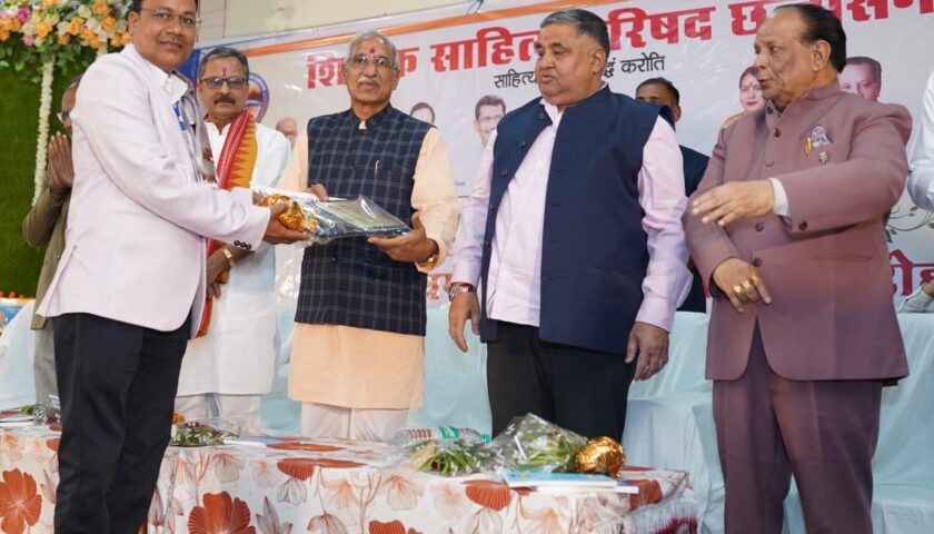 मंत्री अग्रवाल के करकमलों से जिला मुंगेली के विकास खण्ड लोरमी अन्तर्गत शासकीय प्राथमिक शाला सेनगुड़ा, के प्रधान पाठक अशोक कुमार टोण्डे को साहित्य साधक सम्मान से अलंकृत किया गया ,उन्हें प्रशस्ति पत्र, स्मृति चिन्ह , अंगवस्त्र, श्रीफल एवं उनकी पुस्तक गोल्डन बुक ऑफ वर्ल्ड रिकॉर्ड्स में दर्ज कृति “एक पेड़ मां के नाम” भेंट कर सम्मान प्रदान किया गया। छत्तीसगढ़ स्टेट वेयरहाउसिंग कॉरपोरेशन अध्यक्ष चंदूलाल साहू, राजिम विधायक रोहित साहू ,धावे विद्यापीठ, गोपालगंज, बिहार के कुलपति डॉ विनय कुमार पाठक, तथा शिक्षक साहित्य परिषद छत्तीसगढ़ के संयोजक सागर कुमार शर्मा विशेष रूप से उपस्थित रहे। कार्यक्रम में पूर्व विधायक संतोष उपाध्याय, प्रदेश अध्यक्ष महिला मोर्चा विभा अवस्थी, वरिष्ठ साहित्यकार मीर अली मीर, राजिम नगर पालिका अध्यक्ष महेश यादव सहित अनेक साहित्यकार, समाजसेवी, एसडीएम विशाल महाराणा,जिला शिक्षा अधिकारी जगजीत सिंह धीर, सांख्यिकी अधिकारी श्याम चंद्राकर, जनप्रतिनिधि एवं गणमान्य नागरिक उपस्थित थे। शिक्षक साहित्य परिषद छत्तीसगढ़ ,जिला मुंगेली के सदस्य अशोक कुमार टोण्डे ने बताया कि एक पेड़ मां के नाम साझा काव्य संग्रह के लिए के लिए देश के विभिन्न राज्यों से लगभग 650 कविताएँ प्राप्त हुई थीं, जिनमें से श्रेष्ठ चयनित 31 रचनाकारों को पर्यटन एवं संस्कृति मंत्री अग्रवाल द्वारा अंगवस्त्र, श्रीफल, स्मृति चिन्ह, प्रशस्ति पत्र एवं 1100 रूपये की नगद राशि प्रदान कर सम्मानित किए गए। सम्मानित होने वाले रचनाकार पश्चिम बंगाल, उत्तर प्रदेश, गुजरात, केरल, आंध्र प्रदेश, राजस्थान, बिहार, उड़ीसा, तमिलनाडु एवं छत्तीसगढ़ सहित देश के विभिन्न राज्यों से थे। साझा काव्य संग्रह “एक पेड़ माँ के नाम” में प्रतियोगिता से चयनित श्रेष्ठ 151 कविताओं का संकलन किया गया है।कार्यक्रम का समापन साहित्य, संस्कृति और पर्यावरण संरक्षण के प्रति जागरूकता के संदेश के साथ हुआ।