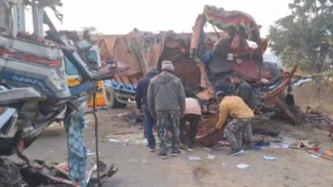 कांकेर, कुणाल सिंह ठाकुर। कांकेर जिले में गुरुवार तड़के एक भीषण सड़क हादसा हो गया। चारामा थाना क्षेत्र के ग्राम रतेसरा के पास नेशनल हाईवे-30 पर सुबह करीब 3 बजे तेज रफ्तार दो भारी ट्रकों की आमने-सामने जबरदस्त टक्कर हो गई। इस दर्दनाक हादसे में ट्रकों में सवार तीन लोगों की मौके पर ही मौत हो गई।टक्कर इतनी भीषण थी कि दोनों ट्रक पूरी तरह क्षतिग्रस्त हो गए। हादसे के बाद हाईवे पर अफरा-तफरी मच गई और नेशनल हाईवे-30 पर वाहनों की आवाजाही पूरी तरह ठप हो गई। सड़क के दोनों ओर लंबा जाम लग गया।घटना की सूचना मिलते ही हाईवे पेट्रोलिंग टीम और चारामा थाना पुलिस मौके पर पहुंची। पुलिस ने जेसीबी और अन्य भारी मशीनों की मदद से क्षतिग्रस्त ट्रकों को हटाने का कार्य शुरू कराया, ताकि यातायात को दोबारा बहाल किया जा सके। फिलहाल पुलिस मृतकों की शिनाख्त करने के साथ ही पूरे मामले की जांच में जुटी हुई है।गौरतलब है कि इसी स्थान पर दो दिन पहले भी एक युवक की कार की चपेट में आने से मौत हो चुकी है। लगातार हो रही दुर्घटनाओं ने इस इलाके में सड़क सुरक्षा और ट्रैफिक व्यवस्था पर गंभीर सवाल खड़े कर दिए हैं।