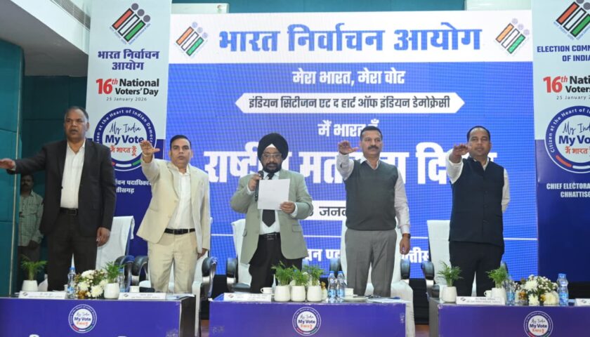 राष्ट्रीय मतदाता दिवस के अवसर पर कार्यक्रम में उपस्थित सभी लोगों को मतदाता शपथ दिलाई गई।कार्यक्रम में नव मतदाताओं और निर्वाचन कार्यों में उल्लेखनीय योगदान देने वाले अधिकारियों-कर्मचारियों को और वर्ष 2025 के लिए सर्वश्रेष्ठ जिला निर्वाचन पुरस्कार अंतर्गत विभिन्न श्रेणियों में उत्कृष्ट कार्य करने वाले जिलों को सम्मानित किया गया। जिसमें ‘नवाचार आधारित मतदाता जागरूकता पहल’ के लिए दक्षिण बस्तर दंतेवाड़ा जिले को, ‘निर्वाचन प्रबंधन एवं व्यवस्थापन (लॉजिस्टिक्स)’ के लिए सूरजपुर जिले को, ‘प्रशिक्षण एवं क्षमता निर्माण’ के लिए दुर्ग जिले को तथा ‘निर्वाचन में प्रौद्योगिकी का प्रभावी उपयोग’ के लिए जशपुर जिले को सम्मानित किया।