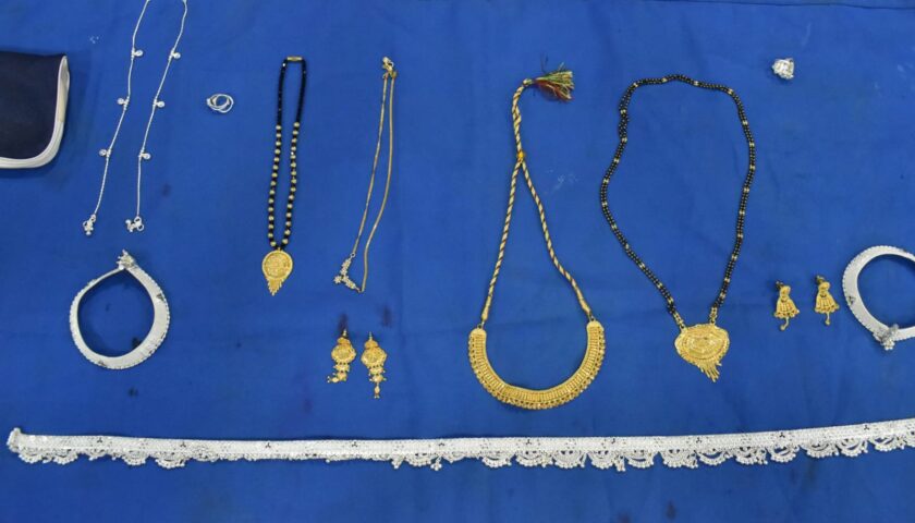 जप्त सामग्री – एक नग हीरे जड़ी सोने की चैन, दो नग मंगलसूत्र, एक नग नेकलेस, दो नग कान के झुमके, एक नग चांदी का करधन, एक नग बड़ी पायल,एक नग छोटी पायल, दो नग बिछिया