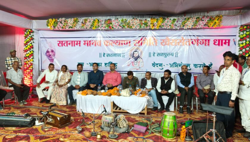 तो उसको में 1 लाख रूपए नगद ईनाम देकर सम्मानित किया जाएगा साथ हमेशा बाबा जी उपदेशों पर चलना चाहिए आगे कलेक्टर ने संबोधित करते हुए कहा की आज बाबा जी आशीर्वाद से मैं छत्तीसगढ़ में सर्विस कर रहा है साथ हमेशा सत्य मार्ग पर चलें चलने अपने जीवन हमेशा तर्रीक की है बाबा जी छत्तीसगढ़, भारत,नहीं पुरे भारत में मानने वाले लोग रहते वह सभी सतनाम भाई शांति मेय रहने वाले लोग हैं यह समाज हमेशा शांति मेय रहे यही बाबा जी कामना करता हूं मेला में आये सभी बधाई दी और बाबा जी आशीर्वाद लेकर नगर वासियों के लिए कामना की ।