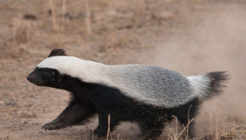 गौरतलब है कि हनी बैजर, बड़े शिकारी जानवरों की तुलना में अपेक्षाकृत छोटा होने के बावजूद, हनी बैजर लड़ाई से पीछे नहीं हटता, यहाँ तक कि अपने से कई गुना बड़े जानवरों से भी। शेर, लकड़बग्घे और यहाँ तक कि ज़हरीले साँप भी हनी बैजर के दृढ़ रवैये और प्रभावशाली जीवन रक्षा कौशल के कारण उससे दूर भाग जाते हैं।