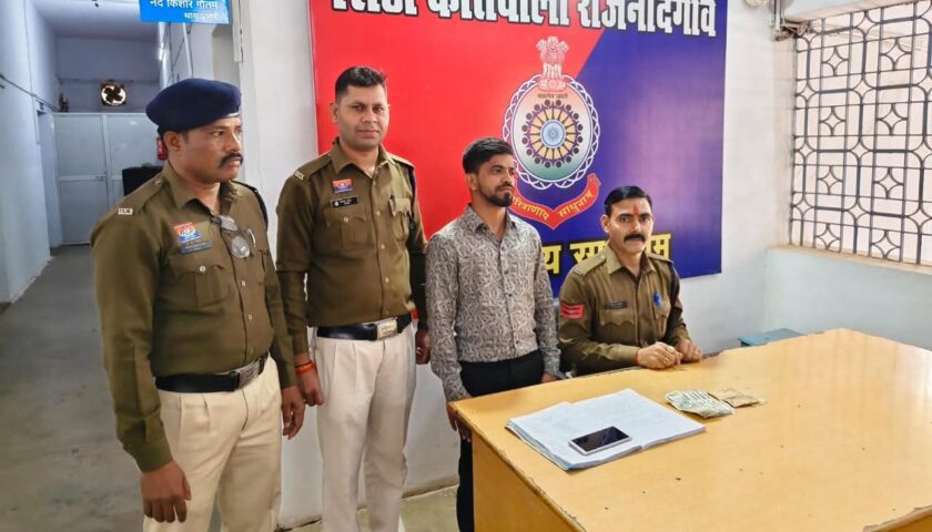 राजनांदगांव, the media point। दिनांक 03.02.2026 को मुखबीर से सूचना मिला कि अविनाश रामटेके उर्फ गोलू नामक व्यक्ति शास्त्री चौक तुलसीपुर के पास अवैध रूप से सट्टा पट्टी लिख रहा है, कि सूचना पर मौका पहुंच कर घेराबंदी कर रेड कार्यवाही कर अविनाश रामटेके उर्फ गोलू पिता विजय रामटेके उम्र 29 वर्ष साकिन वार्ड नं. 18 शास्त्री चौक तुलसीपुर थाना कोतवाली जिला राजनांदगांव (छ0ग0) को पकड़ा गया, जिसके कब्जे से नगदी रकम 3040 रूपये, सट्टा पट्टी, नोट बुक, मोबाईल, डाटपेन, जप्त कर कब्जा पुलिस लिया गया। आरोपी का कृत्य छ0ग0 जुआ प्रतिषेध अधिनियम 2022 की धारा 6 के तहत अपराध सबूत पाये जाने से विधिवत गिरफ्तार कर अभिरक्षा में लिया गया। आरोपी के खिलॉफ अप0क्र0 91/26 धारा छ0ग0 जुआ प्रतिषेध अधिनियम 2022 की धारा 6 कायम कर आज दिनांक 04.02.2026 को न्यायिक रिमांड पर माननीय न्यायालय के समक्ष पेश किया गया, आरोपी का ेजल वारंट जारी होने पर जिला जेल राजनांदगांव में दाखिल किया गया। आगे भी जुंआ सट्टा में संलिप्त व्यक्तियों के खिलॉफ लगातार कार्यवाही जारी रहेगी।