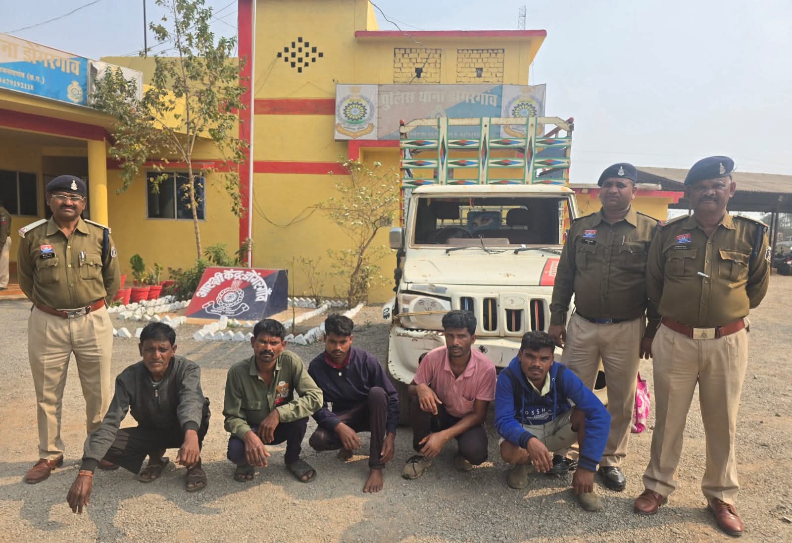इसी क्रम मे 03/02/2026 को रात्रि गस्त पर सउनि0 चौतूराम आर्य, आरक्षक 120 बिसराम वर्मा, आर0 1720 आशाराम ध्रुव मय अधिग्रहित वाहन के रवाना हुऐ थे। इसी दौरान जरिये मोबाइल मुखबीर सूचना मिला कि एक सफेद रंग की बोलेरो पीकप वाहन में गौवंश को ठुसठुस कर भरकर बिना चारा पानी के कत्लखाना ले जाने हेतु ग्राम पहलवान चारभाठा से ग्राम कुल्हाडी की ओर जा रहे है कि, सूचना पर तत्काल कार्यवाही करते हुए थाना डोंगरगांव पुलिस द्वारा निरीक्षक आशीर्वाद राहटगांवकर के नेतृत्व में ग्राम कुल्हाडी भोजराज भंडारी के घर के पास गुडरदेही रोड पास घेराबंदी कर आरोपियो को पकडा गया।