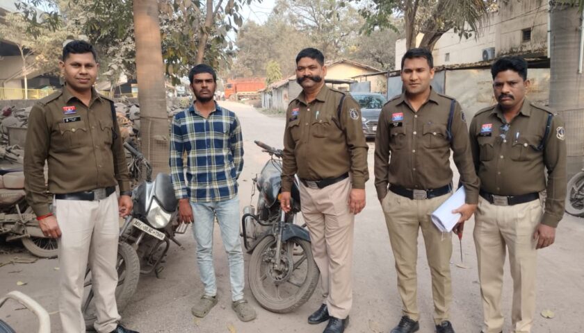 राजनांदगांव, द मीडिया पॉइंट। पुलिस अधीक्षक के निर्देशन पर अतिरिक्त पुलिस अधीक्षक के मार्गदर्शन में नगर पुलिस अधीक्षक राजनादगांव के पर्यवेक्षण पर थाना प्रभारी कोतवाली एवं प्रभारी सायबर सेल राजनांदगांव के नेतृत्व में शहर में लगातार हो रही रही मोटर सायकलों के चोरी की घटनाओं को देखते हुए उसकी रोकथाम एवं आरोपी के पतासाजी हेतु संयुक्त टीम गठित कर घटना स्थल एवं उसके आसपास लगे सी0सी0टी0व्ही0 कैमरे के फुटेज को खंगाला गया, फुटेज में मिले क्लू के आधार पर गठित टीम को गोंदिया महाराष्ट्र की ओर रवाना किया गया, गोंदिया महाराष्ट्र पुलिस के सहयोग लेकर अज्ञात आरोपी का पतासाजी के दौरान संदेह के आधार पर आरोपी संघर्ष सुभाष डोंगरे पिता सुभाष डोंगरे उम्र 18 वर्ष 10 माह साकिन कावड़ी पोस्ट अंजोरा तहसील आमगांव थाना साल्हेकसा जिला गांदिया महाराष्ट्र को हिरासत में लेकर पूछताछ कर उपरोक्त घटनाओं में चोरी गया मोटर सायकलों को राजनांदगांव से चोरी कर अपने गांव कावड़ी लाना बताया। आरोपी के निशानदेही पर मोटर सायकल ड्रिम योगा क्रमांक सी0जी0 08 व्ही- 8732 किमती 15,000 रूपये, मोटर सायकल सी0बी0 साईन क्रमांक सी0जी0 08 ए0डी0-5527 किमती 30,000 रूपये, मोटर सायकल हिरो होण्डा साईन क्रमांक सी0जी0 08 ए0पी0-3461 किमती 25,000 रूपये, बुलेट क्लासिक 350 सिल्वर कलर क्रमांक सी0जी0 08 ए0एच0- 6086 किमती 95,000 रूपये एवं बुलेट स्टैर्ण्ड 350 सी0जी0 04 एल0व्ही0- 0140 किमती 41,759 रूपये जुमला किमती 2,06,759 रूपये को बरामद कर मोटर सायकलों को आरोपी सहित राजनांदगांव लाया गया आरोपी के विरूद्व प्रर्याप्त अपराध सबूत पाये जाने पांचों मामले में आज दिनांक 05.02.2026 को विधिवत गिरफ्तार कर न्यायिक रिमांड पर माननीय न्यायालय के समक्ष पेश किया गया, आरोपी का जेल वारंट प्राप्त होने पर जिला जेल राजनांदगांव में दाखिल किया गया।