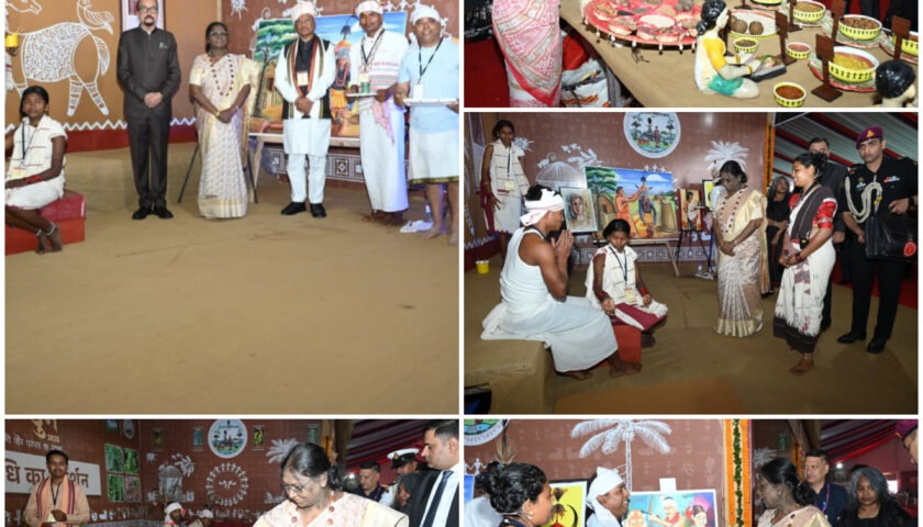 रायपुर, द मीडिया पॉइंट। बस्तर पंडुम के शुभारंभ समारोह में शामिल होने पहुंचीं राष्ट्रपति श्रीमती द्रौपदी मुर्मु ने आज बस्तर की माटी की सुगंध और आदिम जनजातीय परंपराओं पर आधारित भव्य प्रदर्शनी का अवलोकन किया। इस दौरान राष्ट्रपति ने विभिन्न स्टॉलों का भ्रमण कर वहां मौजूद स्थानीय निवासियों और कारीगरों से प्रदर्शित कलाओं एवं उत्पादों की विस्तृत जानकारी ली।