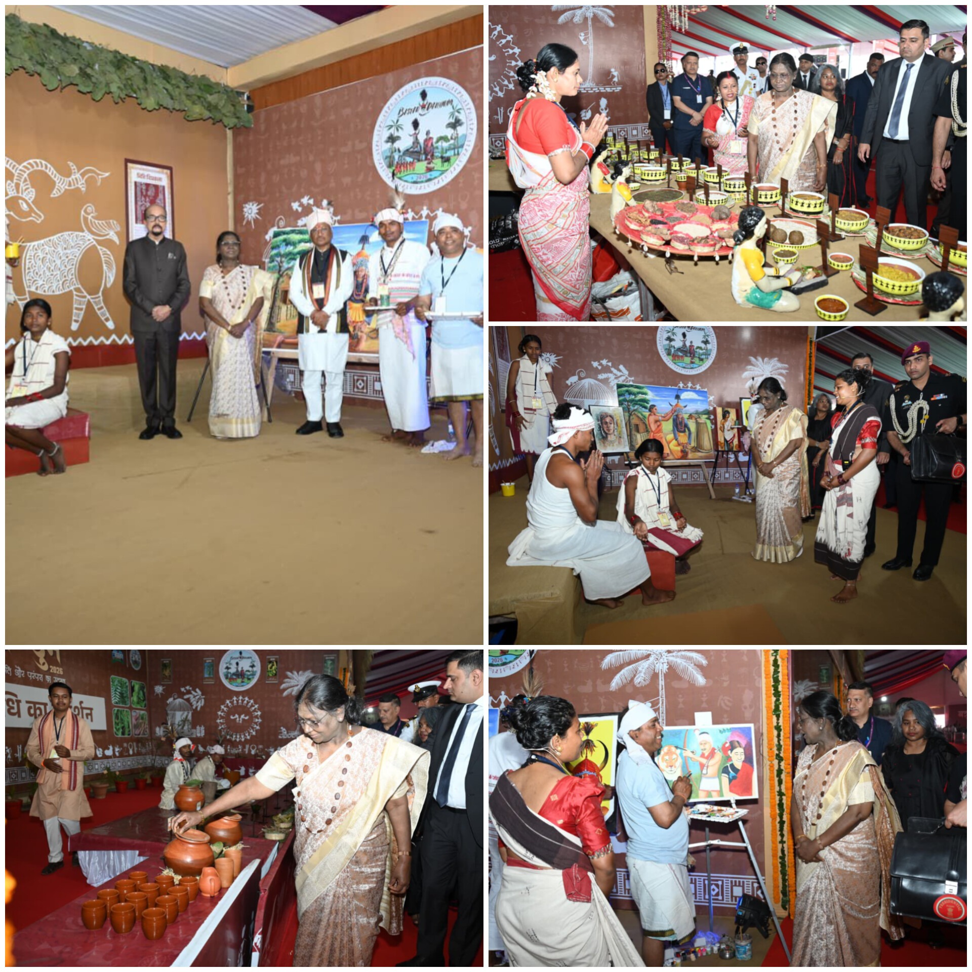 राष्ट्रपति मुर्मु ने बस्तर पंडुम को आदिवासी विरासत को संजोने और उसे पूरी दुनिया तक पहुंचाने का सशक्त माध्यम बताया। उन्होंने एक-एक कर ढोकरा हस्तशिल्प कला, टेराकोटा, वुड कार्विंग, सीसल कला, बांस कला, लौह शिल्प, जनजातीय वेश-भूषा एवं आभूषण, तुम्बा कला, बस्तर की जनजातीय चित्रकला, स्थानीय व्यंजन तथा लोक चित्रों पर आधारित आकर्षक प्रदर्शनी का अवलोकन किया और इसकी सराहना की।बस्तर पंडुम आयोजन स्थल पर जनजातीय हस्तशिल्प आधारित प्रदर्शनी में ढोकरा कला से निर्मित सामग्रियों का विशेष प्रदर्शन किया गया।