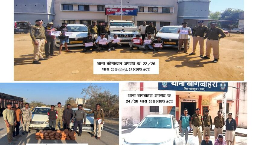 थाना- कोमाखान । एन्टी नारकोटिक टॉस्क फोर्स एवं कोमाखान पुलिस द्वारा दिनांक 09/02/2026 को मुखबीर के सुचना के आधार पर नाकाबदी कर वाहन चेंकिग के दौरान बोलेरो वाहन बोलेरो क्रमांक OD08P0321 से मादक पदार्थ गांजा 40 किग्रा जिसकी कीमत 20,00,000 रूपए को अवैध परिवहन करते पाया गया जिस पर अवैध मादक पदार्थ गांजा एवं परिवहन में प्रयुक्त बोलेरो वाहन को जब्त किया गया है। प्रकरण में 06 संलिप्त आरोपियों के विरूद्ध अपराध धारा 20(बी) नारकोटिक एक्ट का पाये जाने से आरोपियों को विधिवत गिर० कर अपराध क्रमांक – 22/26 धारा – 20(b)(2)(c),29 NDPS एक्ट दर्ज कर अग्रीम कार्यवाही की जा रही है। प्रकरण में विवेचना जारी है तथा नेटवर्क से जुडे़ अन्य संलिप्त व्यक्तियों, वित्तीय लेन-देन एवं संपत्तियों की पहचान कर आगे वैधानिक कार्यवाही की जावेगी।