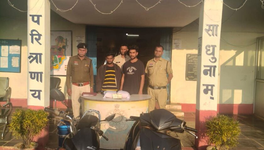 बेमेतरा, द मीडिया पॉइंट। पुलिस उप महानिरीक्षक (DIG) रामकृष्ण साहू (IPS) के निर्देशन पर बेमेतरा पुलिस द्वारा अवैध गतिविधियों पर लगातार प्रभावी कार्यवाही जारी। साइबर सेल एवं चौकी कंडरका पुलिस टीम की संयुक्त कार्यवाही, मादक पदार्थों की अवैध बिक्री हेतु परिवहन में लिप्त 02 आरोपी को गिरफ्तार किया गया है । 20 हजार रूपये का अवैध मादक पदार्थ गांजा रखकर परिवहन करने वाला दो आरोपी पुलिस के गिरफ्त में। 02 किलो 71 ग्राम अवैध मादक पदार्थ गांजा, परिवहन में प्रयुक्त बाईक, स्कुटी, नगदी 5 हजार रूपये जुमला कीमती 01 लाख 25 हजार रूपये के साथ दो आरोपी गिरफ्तार। बेमेतरा पुलिस का संदेश: अब नहीं बख्शे जाएंगे अपराधी।
