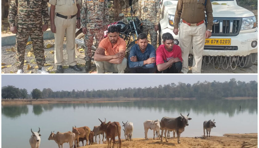 इसी तरह धरमजयगढ़ क्षेत्र में जागरूक नागरिकों और पुलिस की तत्परता से 14 नग गौवंश को तस्करों के चंगुल से मुक्त कराया गया। पुलिस को सूचना मिली थी कि ग्राम कोन्ध्रा जंगल क्षेत्र में कुछ तस्कर गौवंश को मारते-पीटते हुए बुचड़खाने ले जा रहे हैं। सूचना पर एएसआई गंगाराम भगत के नेतृत्व में पुलिस टीम तत्काल मौके पर पहुंची, जहां सूचना देने वाले मिलन बाला निवासी दुर्गापुर कॉलोनी धरमजयगढ़ एवं अन्य ग्रामीणों ने बताया कि तीन अज्ञात तस्कर गौवंश को लेकर जा रहे थे, जिन्हें देख पूछताछ करने पर वे मौके से फरार हो गए। पुलिस द्वारा मौके से 14 नग गौवंश को सुरक्षित जप्त कर पशु चिकित्सक से उनका परीक्षण कराया गया तथा उनके चारा-पानी की व्यवस्था की गई। इस मामले में अज्ञात आरोपियों के विरुद्ध छत्तीसगढ़ कृषक पशु परिरक्षण अधिनियम एवं पशु क्रूरता निवारण अधिनियम के तहत अपराध दर्ज कर उनकी तलाश की जा रही है।