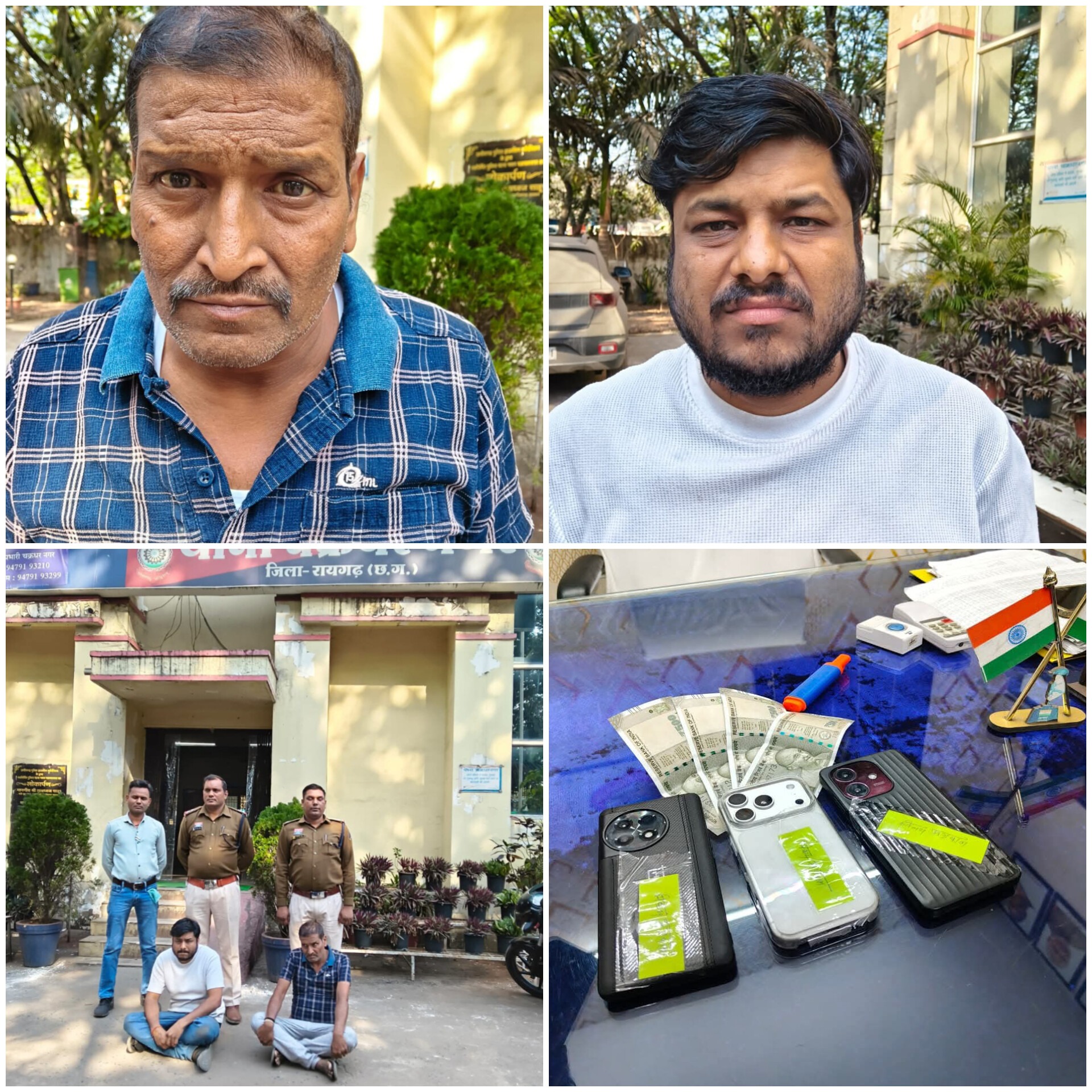 गिरफ्तार आरोपी —1. विकास अग्रवाल उर्फ फून्नु, पिता श्यामसुंदर अग्रवाल, उम्र 38 वर्ष, निवासी फ्लैट नं. 110 हिमालया हाईट्स, थाना चक्रधरनगर, रायगढ़2. विनय अग्रवाल, पिता बजरंग अग्रवाल, उम्र 49 वर्ष, निवासी सांगीतराई, थाना जूटमिल, रायगढ़फरार – गगन अग्रवाल जप्त संपत्ति — नकदी रकम ₹2000 तथा 3 मोबाइल फोन (आईफोन, वन प्लस, ओप्पो), कुल अनुमानित मूल्य ₹82,000।