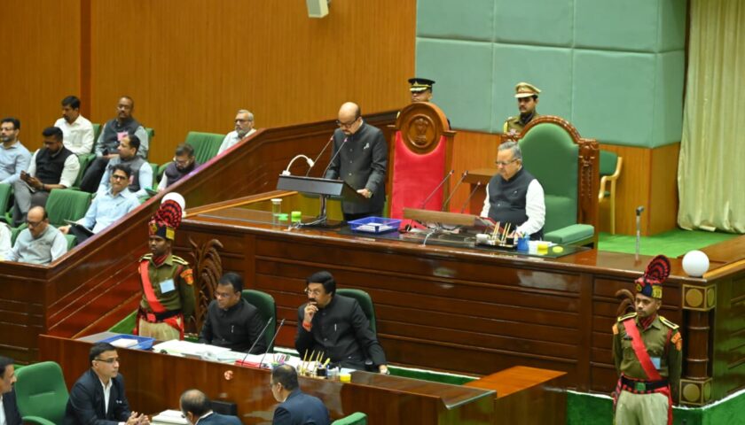 रायपुर, द मीडिया पॉइंट। राज्यपाल रमेन डेका ने आज छत्तीसगढ़ की 6 वीं विधानसभा के अष्टम् सत्र को संबोधित किया और अभिभाषण पढ़ा।विधानसभा पहुंचने पर राज्यपाल डेका का मुख्यमंत्री विष्णु देव साय, विधानसभा अध्यक्ष डॉ रमन सिंह, नेता प्रतिपक्ष डॉ चरण दास महंत ने स्वागत किया। अभिभाषण का मूल पाठ इस प्रकार है-: