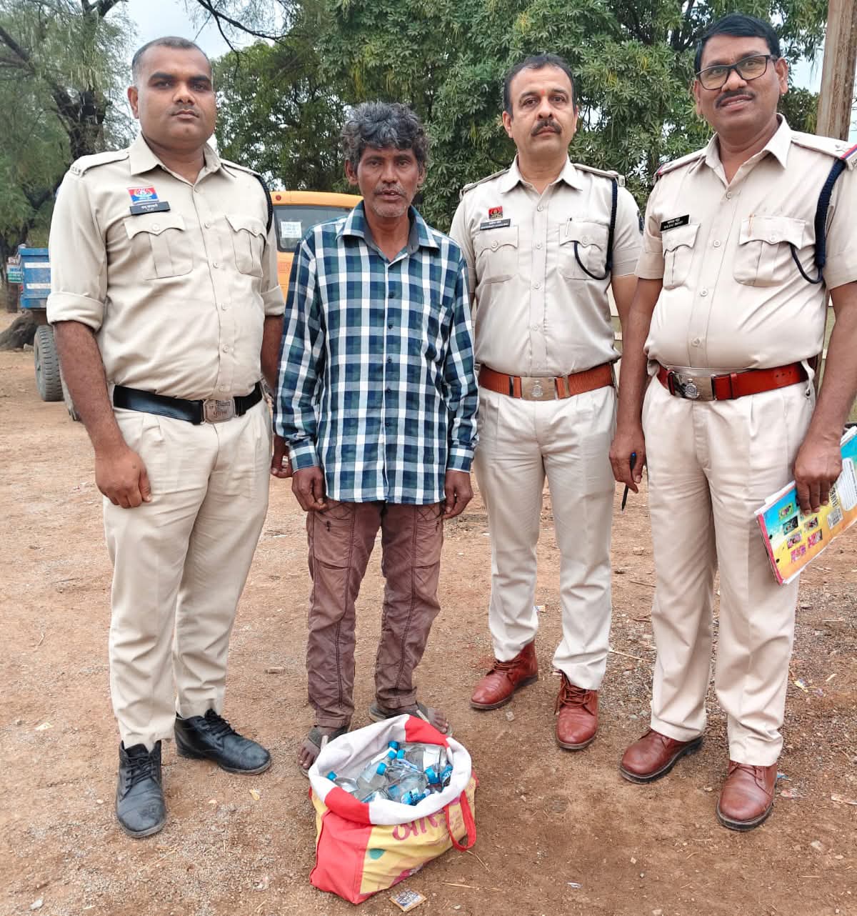 सूचना की तस्दीक हेतु पुलिस टीम द्वारा मौके पर पहुंचकर घेराबंदी कर संदिग्ध व्यक्ति को पकड़ा गया।पूछताछ पर आरोपी ने अपना नाम इमरान खान पिता समशेर अली उम्र 53 वर्ष निवासी रक्से थाना स. लोहारा जिला कबीरधाम (छ.ग.) बताया। आरोपी के कब्जे से एक पीले-लाल रंग के थैले में रखी 36 पौवा देशी मंदिरा प्लेन मदिरा प्रत्येक शीशी 180 एमएल भरी हुई शीलबंद अवस्था में कुल मात्रा 6.480 बल्क लीटर अनुमानित कीमत 2,880 रुपये जप्त की गई।आरोपी द्वारा शराब बिक्री हेतु परिवहन किया जाना पाया गया। शराब के संबंध में वैध दस्तावेज मांगने पर कोई कागजात प्रस्तुत नहीं किए गए। आरोपी का कृत्य धारा 34(2) आबकारी एक्ट के अंतर्गत अपराध पाए जाने से मौके पर विधिवत कार्यवाही करते हुए आरोपी को गिरफ्तार किया गया। गिरफ्तारी की सूचना परिजनों को दी गई।
