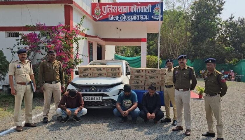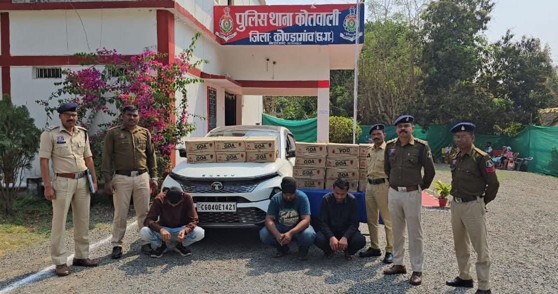 एवं उनके संयुक्त कब्जे के कार के बीच सीट में 04 नग कार्टून व कार के पीछे डिक्की में 15 नग कार्टून के प्रत्येक कार्टुन में CLASS 50X180 ml GOA लिखा हुआ कुल 19 नग कार्टुन अंग्रेजी गोवा शराब बरामद हुआ एवं टाटा कर्व कार क्रमांक CG. 04 QE 1421 कीमती 800000/रू., दो infinix note 30 कम्पनी का मोबाईल, एक SUMSUNG कम्पनी का मोबाईल कम्पनी का मोबाईलए एक REDMI कम्पनी का मोबाईल, कुल 04 नग, कुल जुमला कीमत करीबन 40000/-रू. कुल जुमला किमती 961600/-रूपये को जप्त किया गया एवं आरोपियों का कृत्य आबकारी एक्ट के तहत् अपराध पाये जाने से थाना कोतवाली कोण्डागांव में अपराध क्रमांक 61/2025 धारा 34(2) आबकारी एक्ट के तहत् अपराध दर्ज किया गया तथा आरोपियों को गिरफ्तार कर न्यायिक रिमाण्ड पर जेल भेजी गई है।