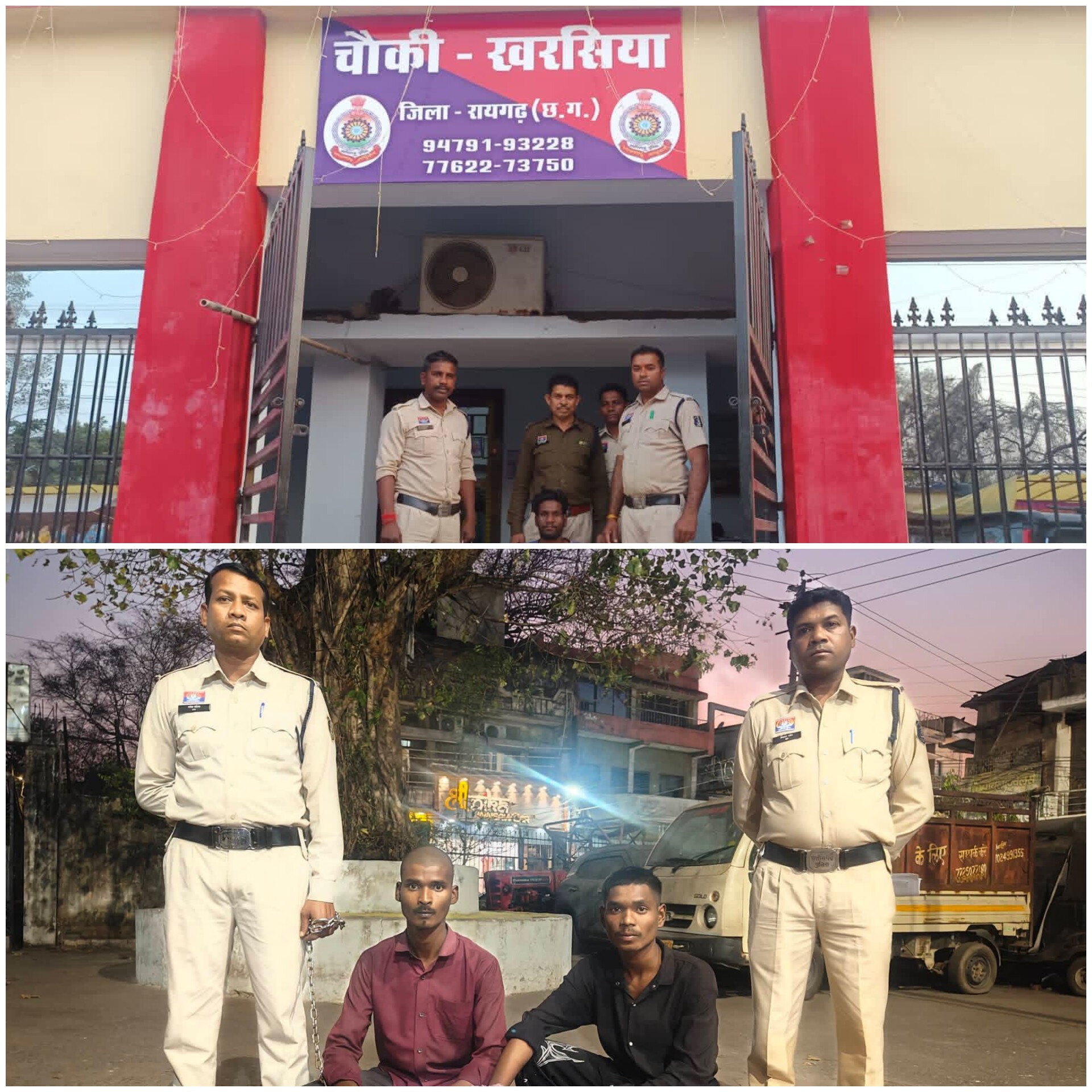 दोनों मामलों में थाना कोतवाली में धारा 296, 351(2), 115(2), 3(5) बीएनएस के तहत अपराध दर्ज कर विवेचना की जा रही थी। गिरफ्तारी के भय से आरोपी फरार थे, जिन्हें मुखबिर सूचना पर गिरफ्तार किया गया। *गिरफ्तार आरोपियों में राजीव यादव उर्फ राजू पिता गिरधारी यादव उम्र 21 वर्ष निवासी केवड़ाबाड़ी बस स्टैंड के पास रायगढ़, वर्तमान पता लक्ष्मीपुर तथा आयुष यादव पिता रमेश यादव उम्र 19 वर्ष निवासी बैकुंठपुर राम मंदिर गली रायगढ़ शामिल हैं।