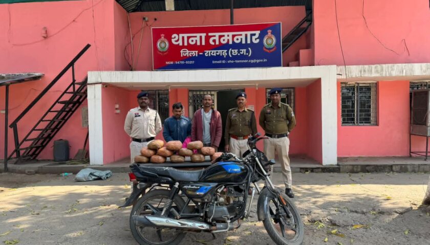 रायगढ़, द मीडिया पॉइंट। वरिष्ठ पुलिस अधीक्षक रायगढ़ शशि मोहन सिंह के दिशा निर्देशन पर जिले में मादक पदार्थों की अवैध तस्करी पर अंकुश लगाने चलाए जा रहे “ऑपरेशन आघात” के तहत तमनार पुलिस को बड़ी सफलता मिली है। कल सुबह दिनांक 26 फरवरी 2026 को तमनार पुलिस ने मुखबिर की सूचना पर बांधापाली पंडरी डबरी तालाब के पास मेन रोड पर घेराबंदी कर एक बिना नंबर नीले-काले रंग की स्प्लेंडर प्लस मोटरसाइकिल में गांजा लेकर बिक्री करने पत्थलगांव की ओर जा रहे दो आरोपियों को गिरफ्तार किया है।