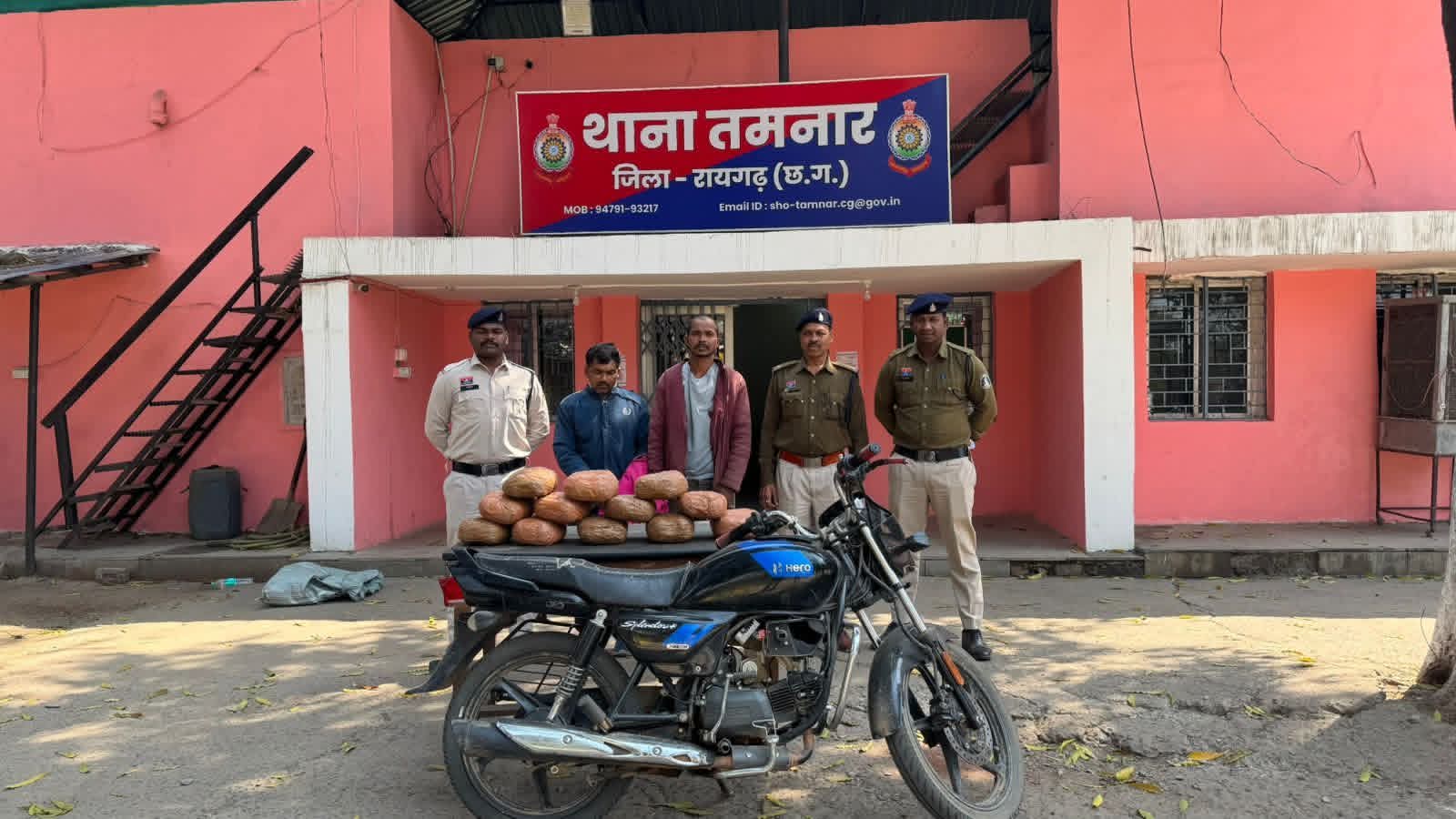 पुलिस को सूचना मिली थी कि दो व्यक्ति स्प्लेंडर प्लस मोटरसाइकिल में गांजा लेकर हमीरपुर, धौराभांठा, हुकराडीपा और कुंजेमुरा होते हुए पत्थलगांव की ओर जा रहे हैं। सूचना पर तत्काल थाना प्रभारी तमनार निरीक्षक कमला पुसाम ठाकुर ने वरिष्ठ अधिकारियों को अवगत कराते हुए पुलिस टीम के साथ मौके पर घेराबंदी की और संदिग्ध मोटरसाइकिल को रोककर दोनों व्यक्तियों को हिरासत में लिया। पूछताछ में मोटरसाइकिल चालक ने अपना नाम