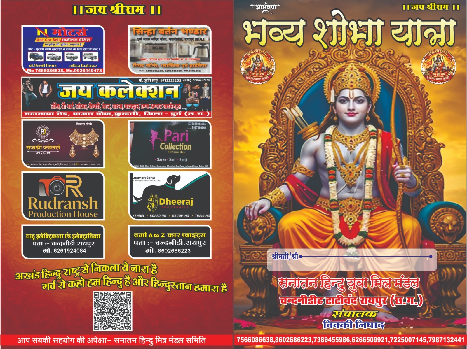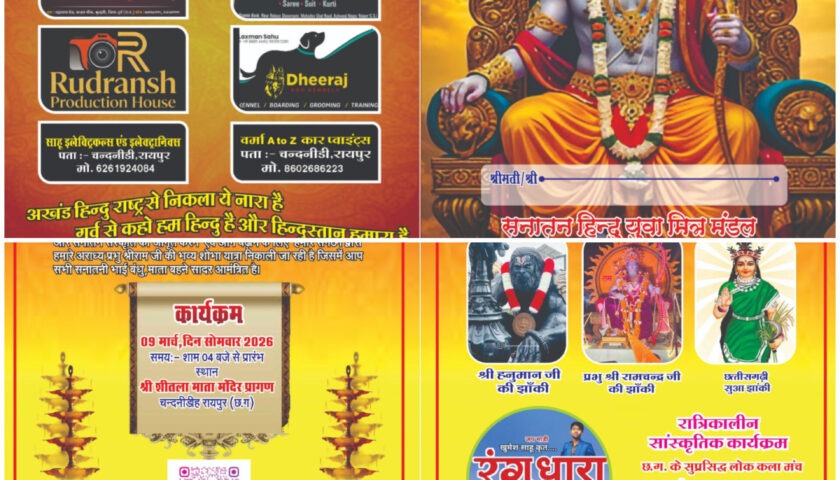 छत्तीसगढ़ (विशेष संवाददाता), द मीडिया पॉइंट। सनातन संस्कृति और छत्तीसगढ़ी लोक कला के संरक्षण हेतु सनातन हिन्दू युवा मित्र मण्डल समिति द्वारा एक विशाल आयोजन की तैयारी पूर्ण कर ली गई है। इस भव्य कार्यक्रम के मुख्य संचालक विक्की निषाद ने जानकारी साझा करते हुए बताया कि आयोजन का मुख्य उद्देश्य युवा पीढ़ी को अपनी जड़ों और भक्ति मार्ग से जोड़ना है।भक्ति और परंपरा का अनूठा समागमसंचालक विक्की निषाद के नेतृत्व में दिनांक 9 मार्च को आयोजित होने वाली इस भव्य शोभा यात्रा में भक्ति के कई रंग देखने को मिलेंगे। शाम 4:00 बजे से निकलने वाली इस यात्रा में:प्रभु श्री राम और हनुमान जी की मनमोहक जीवंत झांकियां आकर्षण का केंद्र रहेंगी।छत्तीसगढ़ महतारी की गौरवशाली झांकी के साथ पारंपरिक सुआ नृत्य की प्रस्तुति प्रदेश की लोक संस्कृति की छटा बिखेरेगी।DJ और धुमाल की थाप पर भक्तगण झूमते नजर आएंगे।रात्रिकालीन ‘रंग धारा’ का जादूशोभा यात्रा के पश्चात रात्रि 11:00 बजे से विशाल सांस्कृतिक मंच सजेगा। विक्की निषाद ने बताया कि छत्तीसगढ़ का सुप्रसिद्ध लोक कला मंच ‘रंग धारा’ अपनी पूरी टीम के साथ रात भर दर्शकों को मंत्रमुग्ध करेगा। लोक गीतों और पारंपरिक वाद्ययंत्रों की गूंज इस धार्मिक उत्सव को और भी खास बनाएगी।”हमारा प्रयास है कि इस आयोजन के माध्यम से न केवल भक्ति का प्रचार हो, बल्कि छत्तीसगढ़ी कला और सुआ नृत्य जैसे पारंपरिक धरोहरों को भी उचित सम्मान मिले।”— विक्की निषाद (संचालक)।