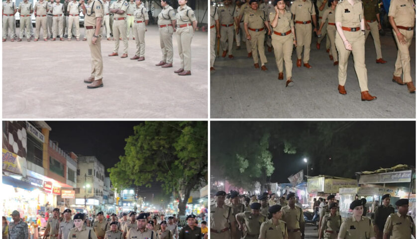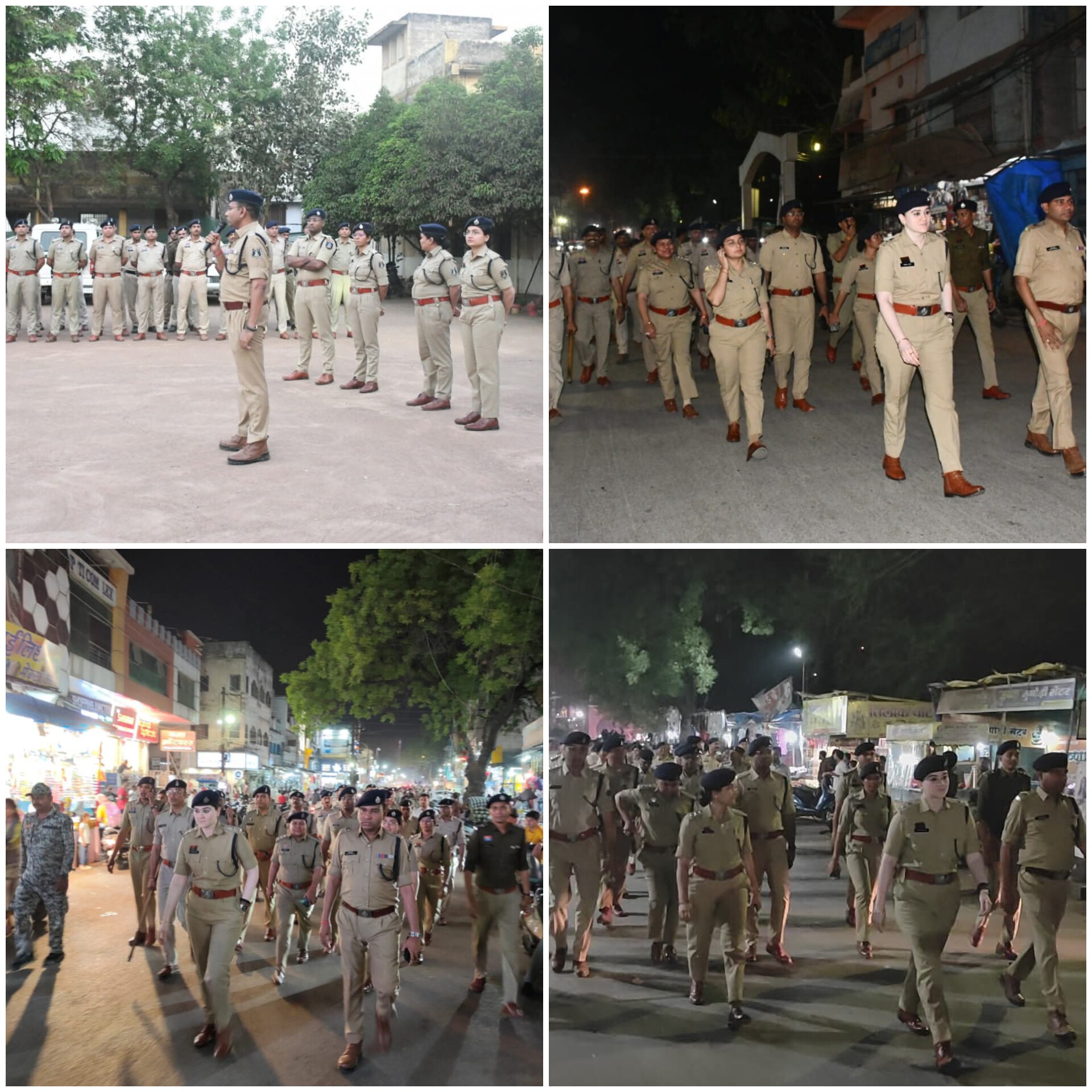 राजनांदगांव, द मीडिया पॉइंट। आगामी होली पर्व के मद्देनज़र जिले में शांति, सुरक्षा एवं कानून-व्यवस्था बनाए रखने के उद्देश्य से पुलिस अधीक्षक राजनांदगांव अंकिता शर्मा के नेतृत्व में अतिरिक्त पुलिस अधीक्षक कीर्तन राठौर के साथ आज नगर क्षेत्र में व्यापक फ्लैग मार्च निकाला गया।पुलिस लाइन राजनांदगांव से प्रारंभ हुआ फ्लैग मार्च गुरुद्वारा चौक, मानव मंदिर चौक, आजाद चौक, भारत माता चौक, गंज चौक सहित शहर के प्रमुख मार्गों एवं संवेदनशील क्षेत्रों से होते हुए सम्पन्न हुआ।
