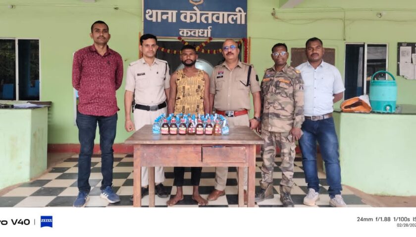 दिनांक 27.02.2026 को सहा. उप निरीक्षक सुरेश जायसवाल के नेतृत्व में हमराह स्टाफ आरक्षक 658 धर्मेन्द्र मेरावी, आरक्षक 495 अजय वैष्णव, आरक्षक 456 हिरेन्द्र साहू एवं आरक्षक 447 दिलहरण मरकाम द्वारा पेट्रोलिंग के दौरान मुखबीर सूचना पर घुघरी रोड अटल आवास जाने वाले मार्ग पर पुल के पास घेराबंदी कर रेड कार्यवाही की गई।रेड कार्यवाही के दौरान आरोपी अनिल सारथी पिता शिव सारथी उम्र 27 वर्ष निवासी घुघरी रोड अटल आवास, ग्राम घुघरी कला, थाना कवर्धा, जिला कबीरधाम (छ.ग.) को अवैध रूप से शराब बिक्री करते हुए पकड़ा गया। आरोपी के कब्जे से 48 नग पौवा शोले प्लेन देशी मदिरा (180 एमएल प्रत्येक) एवं 08 नग पौवा रोमियो प्लेन देशी मदिरा (180 एमएल प्रत्येक) कुल 10.080 बल्क लीटर शराब तथा बिक्री रकम 200 रुपये जप्त की गई।