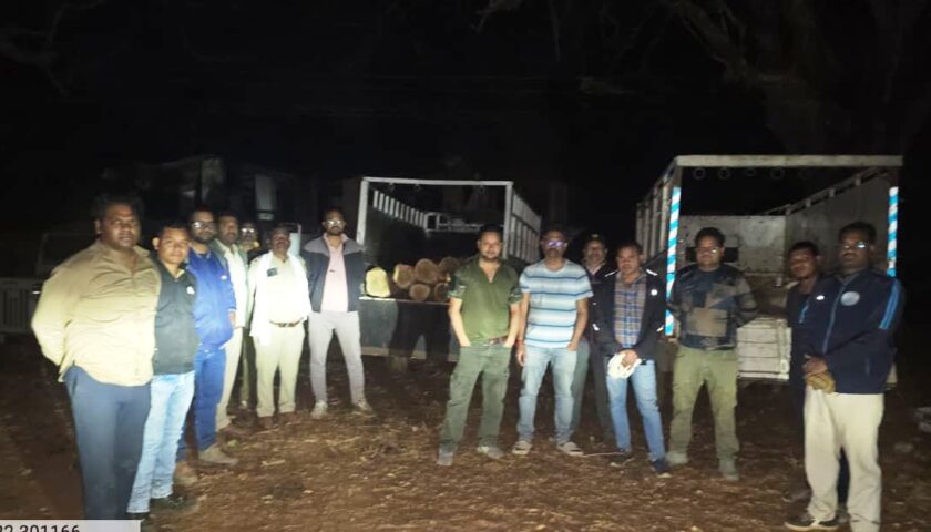 प्रबंध संचालक छत्तीसगढ़ राज्य वन विकास निगम के निर्देशानुसार अवैध कटाई, अतिक्रमण एवं अवैध उत्खनन पर प्रभावी नियंत्रण के लिए सभी परियोजना मंडलों में नियमित भ्रमण तथा सामयिक एवं रात्रिकालीन गश्त की जा रही है। इस सतत कार्रवाई से वन क्षेत्रों की सुरक्षा में सकारात्मक परिणाम मिल रहे हैं। इसी क्रम में 1 मार्च 2026 को सूचना प्राप्त होने पर कोटा परिक्षेत्र के अंतर्गत सेमरिया-दानोखार मार्ग, कक्ष क्रमांक पी/805 में रात्रिकालीन गश्त के दौरान टीम ने दबिश दी। कार्रवाई के दौरान वन अपराधी 2 पिकअप वाहन एवं सागौन के लट्ठे मौके पर छोड़कर फरार हो गए। आसपास के क्षेत्र में खोजबीन की गई, किंतु आरोपी पकड़ में नहीं आ सके।