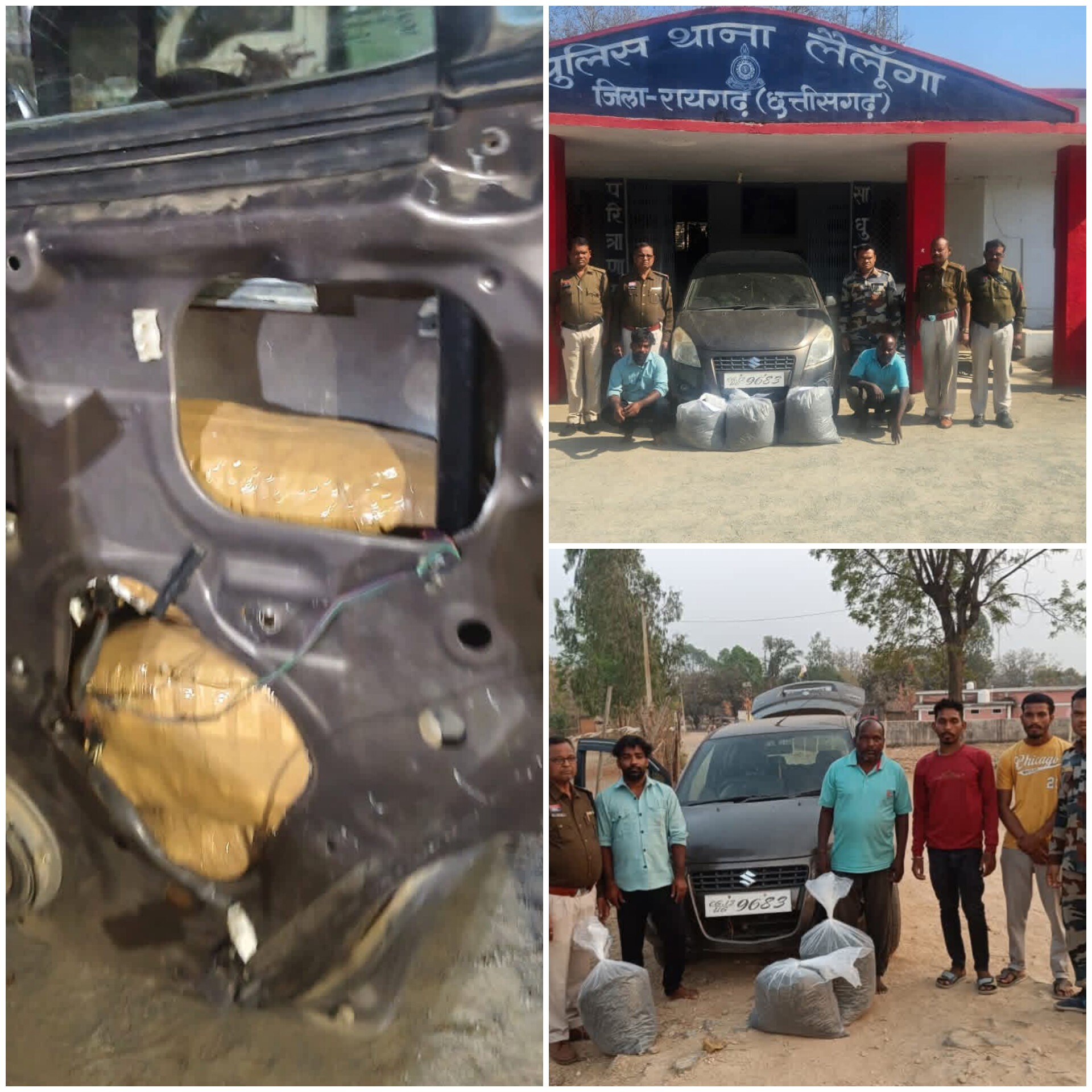 सूचना को गंभीरता से लेते हुए एसएसपी सिंह द्वारा थाना लैलूंगा एवं साइबर थाना की संयुक्त टीम को आरोपियों की धरपकड़ के निर्देश दिए गए। दिनांक 01 मार्च 2026 को सूचना मिली कि दो व्यक्ति चॉकलेट रंग की मारुति सुजुकी रिट्ज कार क्रमांक CG-13-UG-9683 से उड़ीसा से गांजा लेकर पाकरगांव लैलूंगा की ओर आ रहे हैं। सूचना पर पुलिस टीम द्वारा पाकरगांव अटल चौक के पास घेराबंदी की गई। शाम करीब 6 बजे संदिग्ध कार दिखाई देने पर पुलिस ने वाहन को रोकने का प्रयास किया, लेकिन आरोपी पुलिस को देखकर वाहन को कच्चे रास्ते की ओर मोड़कर भागने लगे। पुलिस टीम ने तत्परता दिखाते हुए घेराबंदी कर वाहन को रोक लिया।