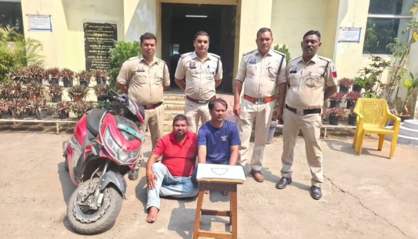 रायगढ़, द मीडिया पॉइंट। वरिष्ठ पुलिस अधीक्षक शशि मोहन सिंह के दिशा निर्देशन पर थाना चक्रधरनगर क्षेत्र में वृद्ध महिला के गले से सोने की चैन झपटने की घटना पर पुलिस ने त्वरित कार्रवाई करते हुए चंद घंटों के भीतर दो आरोपियों को गिरफ्तार किया है। पुलिस ने आरोपियों के कब्जे से लूटी गई सोने की माला तथा वारदात में प्रयुक्त स्कूटी बरामद कर जप्त की है और आरोपियों को न्यायिक रिमांड पर भेजा जा रहा है।