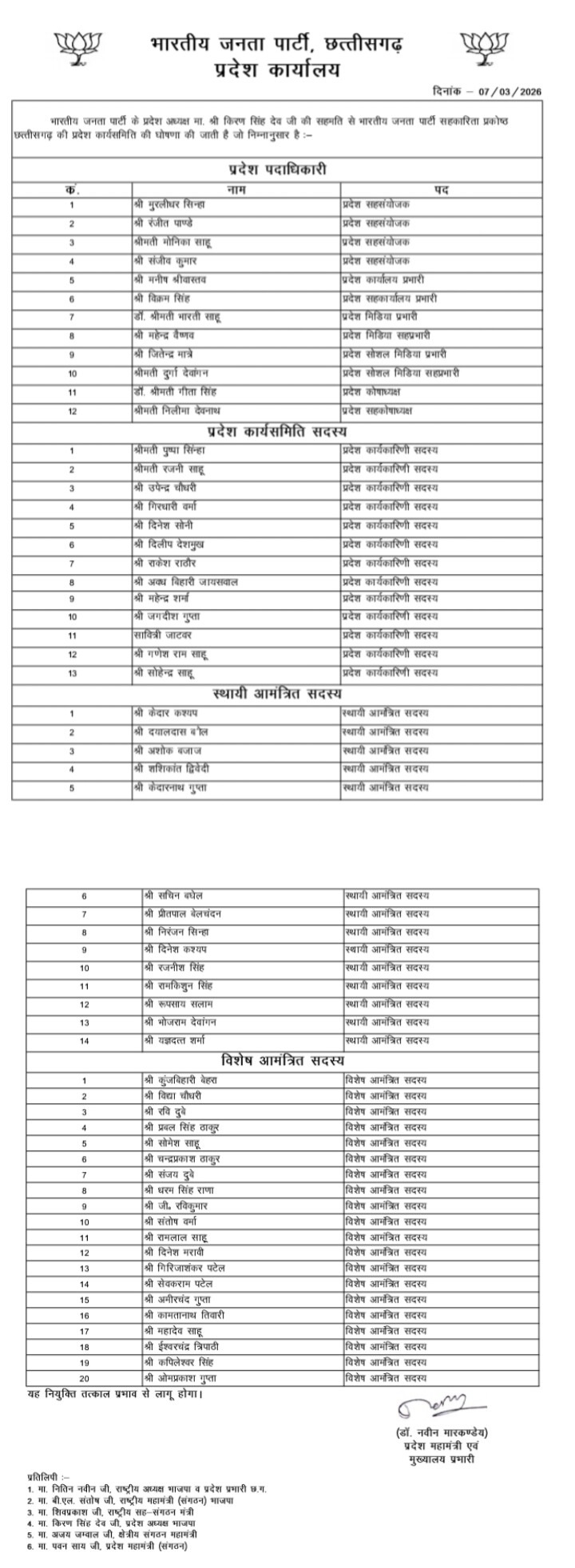 बिलासपुर, द मीडिया पॉइंट। भाजपा के प्रदेश अध्यक्ष किरण सिंह देव और संगठन मंत्री पवन साय के मार्गदर्शन तथा सहकारिता प्रकोष्ठ के प्रदेश संयोजक प्रवीण कुमार दुबे द्वारा बिलासपुर की समाजसेवी डॉ. गीता सिंह को सहकारिता प्रकोष्ठ में प्रदेश कोषाध्यक्ष की महत्वपूर्ण जिम्मेदारी सौंपी गई है। उनकी इस नियुक्ति से संगठन के कार्यकर्ताओं और महिलाओं में खुशी की लहर देखी जा रही है।डॉ. गीता सिंह लंबे समय से सामाजिक गतिविधियों में सक्रिय रही हैं और महिलाओं के सशक्तिकरण, स्व-सहायता समूहों तथा सामाजिक कार्यों में लगातार योगदान देती रही हैं। उनकी सक्रियता और संगठनात्मक क्षमता को देखते हुए पार्टी ने उन्हें यह अहम जिम्मेदारी दी है।उनकी नियुक्ति की खबर मिलते ही मध्यान्ह भोजन रसोइया कल्याण संघ और बिहान से जुड़ी महिलाओं में भारी हर्ष व्याप्त हो गया। रसोइया कल्याण संघ की जिलाध्यक्ष संतोषी कौशिक ने कहा कि डॉ. गीता सिंह को यह जिम्मेदारी मिलने से संगठन को मजबूती मिलेगी और महिलाओं की आवाज को प्रदेश स्तर तक मजबूती से उठाने का अवसर मिलेगा।इस दौरान कृष्णा कंवर, शांति बाई, अन्नपूर्णा (चांपा), लक्ष्मी महंत, सुनीता मिरी (कोरबा), विनोद खांडे (बिलासपुर), गायत्री साहू (कांकेर) और रूखमणी पांडे (सिवनी) सहित बिहान की टीम लीडरों ने भी डॉ. गीता सिंह को बधाई देते हुए खुशी जाहिर की।सभी ने उम्मीद जताई कि डॉ. गीता सिंह अपने अनुभव और समर्पण के साथ संगठन को मजबूत करने और सहकारिता से जुड़े कार्यों को आगे बढ़ाने में महत्वपूर्ण भूमिका निभाएंगी।