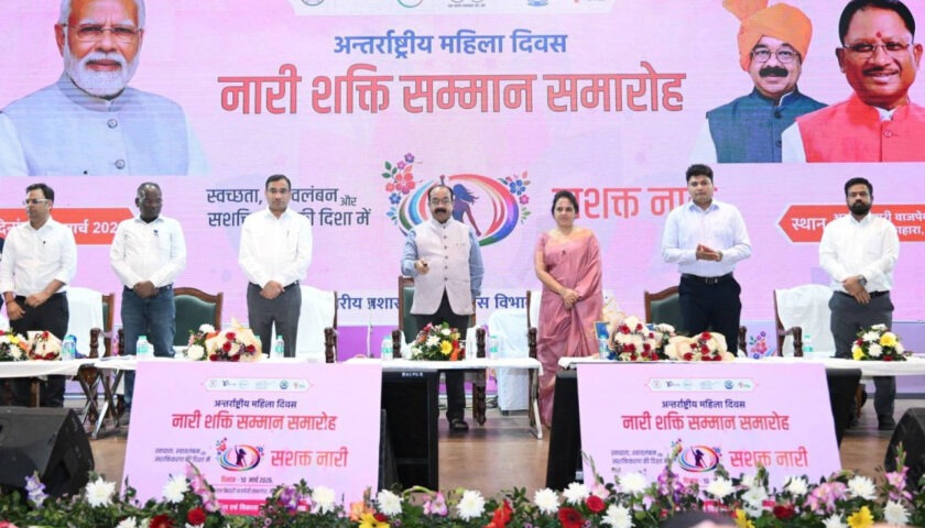रायपुर, द मीडिया पॉइंट। महिलाएं ईश्वर की अनुपम कृति हैं। ईश्वर ने उन्हें विशेष शक्तियां और क्षमताएं दी हैं। महिलाओं ने अपनी लगन, मेहनत और काबिलियत से हर क्षेत्र में अपना स्थान बनाया है। हर क्षेत्र में उपलब्धियां और ऊंचाईयां हासिल की हैं। माताओं व बहनों का सम्मान एवं विशेष स्थान प्राचीन काल से हमारी संस्कृति और परंपरा में है। उप मुख्यमंत्री तथा नगरीय प्रशासन एवं विकास मंत्री अरुण साव ने नारी शक्ति सम्मान समारोह में ये विचार व्यक्त किए। उन्होंने नगरीय प्रशासन एवं विकास विभाग द्वारा आज रायपुर के शासकीय मेडिकल कॉलेज ऑडिटोरियम में आयोजित समारोह में स्वच्छता, स्वावलंबन और सशक्तीकरण के लिए उत्कृष्ट कार्य करने वाली स्वच्छता दीदियों, महिला हितग्राहियों एवं स्वसहायता समूहों की महिलाओं को सम्मानित किया।
