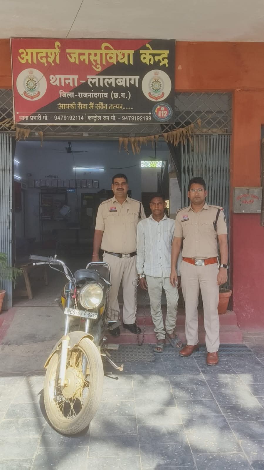 प्रार्थी की रिपोर्ट पर थाना लालबाग में अपराध क्रमांक 107/2026 धारा 303 बीएनएस कायम कर विवेचना में लिया गया। चोरी हुए मोटर सायकल की बरामदगी तथा अज्ञात आरोपी का त्वरित पतासाजी करने हेतु पुलिस अधीक्षक महोदया के प्राप्त निर्देशन और अतिरिक्त पुलिस अधीक्षक तथा नगर पुलिस अधीक्षक के मार्गदर्शन में राजनांदगांव पुलिस द्वारा त्वरित पतासाजी करते हुए विवेचना के दौरान प्राप्त मुखबिर सूचना के आधार पर पुलिस टीम द्वारा फरहद क्षेत्र में घेराबंदी कर संदेही व्यक्ति को मोटर सायकल क्रमांक CG 08 F 8817 के साथ पकड़ा गया। पूछताछ करने पर उसने अपना नाम देवेन्द्र छेदैया पिता मोतीलाल छेदैया उम्र 24 वर्ष निवासी ग्राम मोखली थाना लालबाग जिला राजनांदगांव बताया।उक्त व्यक्ति से वाहन के वैध दस्तावेज की मांग करने पर वह कोई कागजात प्रस्तुत नहीं कर सका तथा लिखित में उक्त मोटर सायकल को चोरी का होना स्वीकार किया।