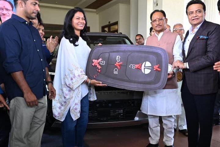 रायपुर, द मीडिया पॉइंट। मुख्यमंत्री विष्णुदेव साय ने आज नवा रायपुर स्थित अपने निवास में आयोजित एक गरिमामय समारोह में भारतीय महिला क्रिकेट टीम की फिजियोथेरेपिस्ट और छत्तीसगढ़ की बेटी आकांक्षा सत्यवंशी को टाटा सिएरा कार उपहार स्वरूप प्रदान की। इस अवसर पर मुख्यमंत्री ने आकांक्षा को बधाई देते हुए कहा कि हमारी बेटियों ने विश्व कप जीतकर देश का गौरव बढ़ाया है। उन्होंने महिला क्रिकेट टीम के सम्मान और प्रोत्साहन के लिए टाटा मोटर्स द्वारा कार उपहार देने की इस पहल की सराहना की।