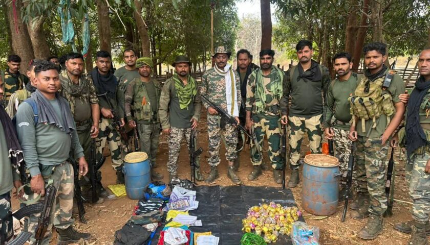 बरामद सामग्री — प्रेशर कुकर आईईडी – 3 नग (01 नग लगभग 10 किग्रा एवं 02 नग लगभग 05–05 किग्रा)। पाइप आईईडी – 01 नग। बिजली वायर – 01 बंडल। नक्सल वर्दी – 03 नग। फटाखा, नक्सल साहित्य एवं अन्य नक्सली सामग्री। सुरक्षा की दृष्टि से बरामद सभी आईईडी को मौके पर ही सुरक्षित तरीके से नष्ट कर दिया गया।