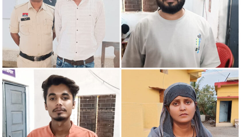 गिरफ्तार आरोपीः- 1- नमीत निर्मलकर उर्फ सन्नी पिता रेवाराम निर्मलकर उम्र 25 साल साकिन किल्लापारावार्ड नं. 02 हनुमान मंदिर के पीछे डोंगरगांव थाना डोंगरगांव जिला राजनांदगांव (छ.ग.) 2- राहुल कुमार मालेकर पिता बलीराम मालेकर उम्र 29 साल साकिन वार्ड नं. 01 किल्लापारा डोंगरगांव थाना डोंगरगांव, 3- तुलीका रायकर पिता आशिष रायकर उम्र 32 साल साकिन वार्ड नं. 06 चिखली पुलिस चौकी चिखली जिला राज. 4- आशिष रायकर पिता स्व0 राजकुमार रायकर, उम्र 35 साल, दोनो निवासी वार्ड नं. 06 चिखली पुलिस चौकी चिखली।