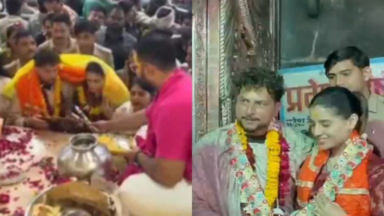 वृंदावन, द मीडिया पॉइंट। भारतीय क्रिकेट टीम के स्टार स्पिनर कुलदीप यादव शादी के बाद पत्नी वंशिका चड्ढा के साथ धार्मिक यात्रा पर निकले हैं। इसी क्रम में कपल पहली बार वृंदावन पहुंचा जहां उन्होंने श्रद्धा भाव से भगवान बांके बिहारी के दर्शन किए। मंगलवार शाम कुलदीप और उनकी पत्नी मंदिर पहुंचे और करीब 25 मिनट तक शांतिपूर्ण माहौल में पूजा-अर्चना की। दर्शन के दौरान दोनों ने पूरी श्रद्धा के साथ इत्र सेवा की और भगवान को 56 भोग अर्पित किए जिसका हिंदू परंपरा में विशेष महत्व माना जाता है।इस यात्रा को कपल ने बेहद निजी रखा। मंदिर के सेवायतों के अनुसार, कुलदीप ने पहले ही अनुरोध किया था कि उनकी यात्रा को सार्वजनिक न किया जाए ताकि दर्शन में कोई व्यवधान न आए।गौरतलब है कि कुलदीप यादव ने 14 मार्च को मसूरी में अपनी बचपन की दोस्त वंशिका चड्ढा से शादी की थी इसके बाद 17 मार्च को लखनऊ में भव्य रिसेप्शन का आयोजन किया गया, जिसमें खेल और राजनीतिक जगत की कई हस्तियां शामिल हुईं।