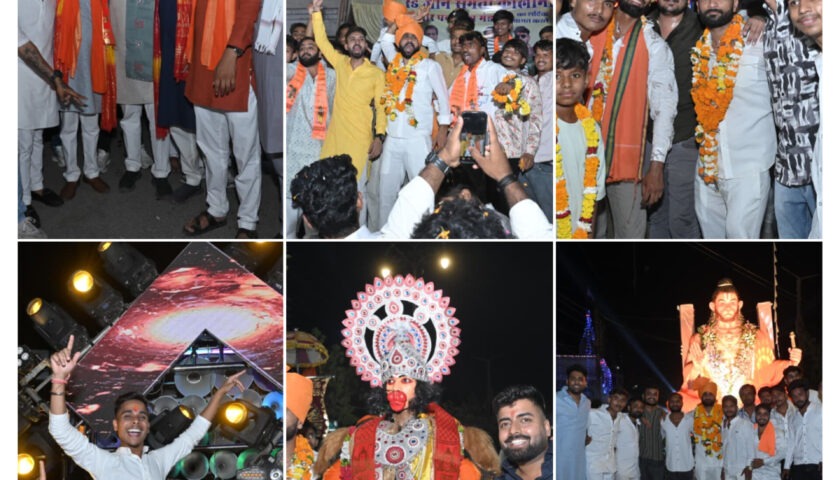 रायपुर, द मीडिया पॉइंट। 2 अप्रैल 2026 को छत्तीसगढ़ के राजधानी रायपुर में आयोजित भव्य हनुमान जन्मोत्सव शोभायात्रा ने पूरे शहर में भक्तिभाव की लहर फैलाई। हनुमान जी की विशाल काय मूर्ति लोगों को अपनी ओर आकर्षित किया। यात्रा में गोरिल्ला जैसी वेशभूषा में श्रद्धालु शामिल हुए। रंगोली और सांस्कृतिक सजावट ने शोभायात्रा को और भव्य बनाया। हजारों श्रद्धालुओं ने पूरे मार्ग में आस्था और उत्साह के साथ भाग लिया। अध्यक्ष देव यादव और संरक्षक अरुण यादव के मार्गदर्शन में यह आयोजन बजरंग नगर, रायपुर से शुरू होकर एकता, भक्ति और सांस्कृतिक उत्साह का अद्भुत उदाहरण बना।