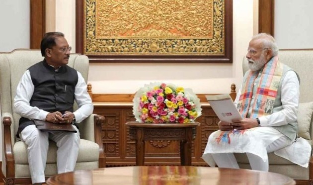 रायपुर, द मीडिया पॉइंट। छत्तीसगढ़ के मुख्यमंत्री विष्णुदेव साय ने प्रधानमंत्री नरेंद्र मोदी से मुलाकात कर बस्तर के विकास की नई रूपरेखा प्रस्तुत की। इस दौरान उन्होंने नक्सलवाद में आई कमी और क्षेत्र में स्थापित हो रही शांति के लिए प्रधानमंत्री का आभार जताया। साथ ही बस्तर के समग्र विकास का विस्तृत ब्लूप्रिंट सौंपते हुए मानसून के बाद क्षेत्र के दौरे के लिए आमंत्रित किया, जहां कई बड़ी परियोजनाओं के शिलान्यास और लोकार्पण की योजना है।