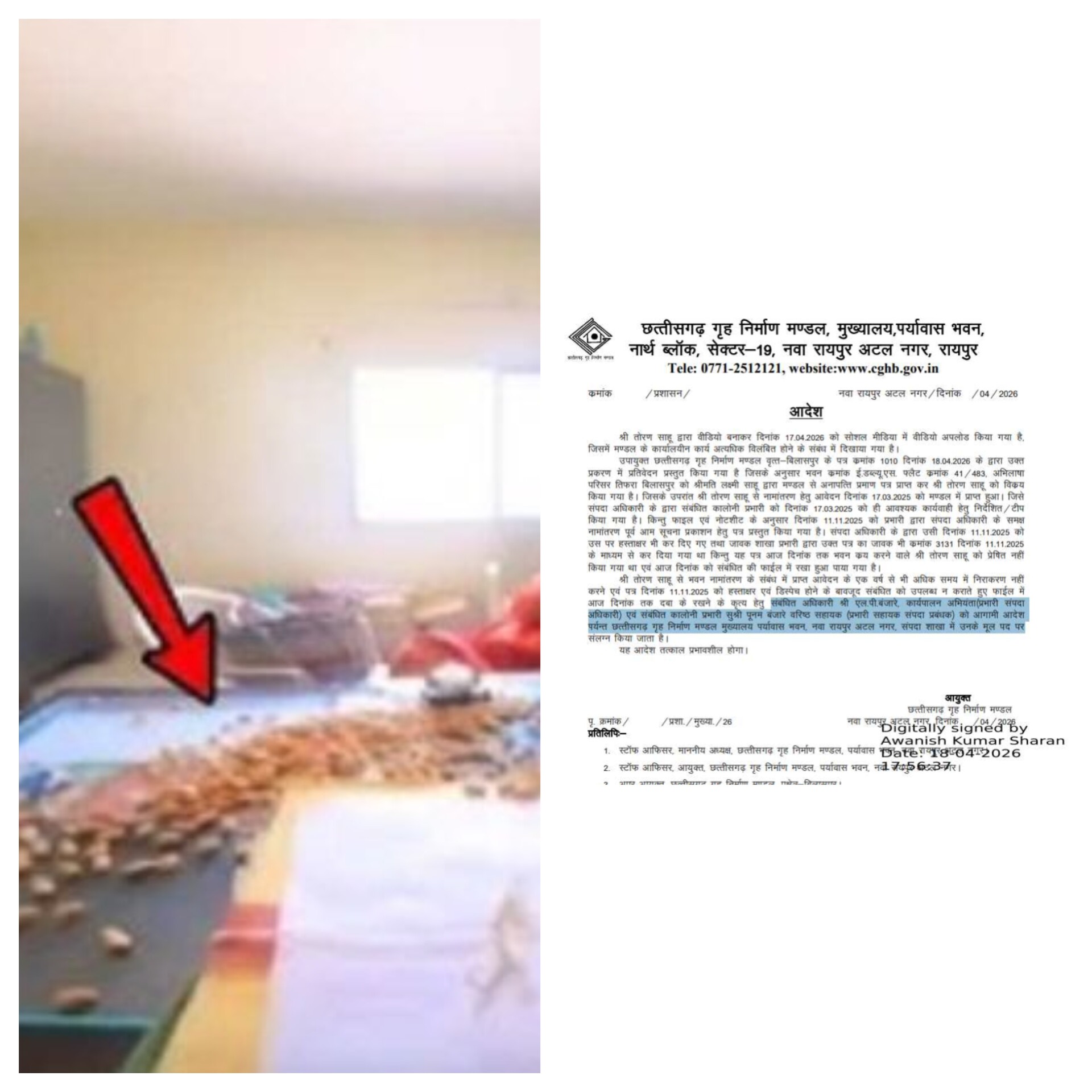 मामले का वीडियो वायरल होने के बाद विभाग ने भी कार्रवाई की है। छत्तीसगढ़ गृह निर्माण मंडल ने कार्यपालन अभियंता (प्रभारी संपदा अधिकारी) एल.पी. बंजारे और संबंधित कॉलोनी प्रभारी पूनम बंजारे को आगामी आदेश तक मुख्यालय में अटैच कर दिया है।यह घटना प्रशासनिक लापरवाही और आम लोगों की परेशानियों को उजागर करती है। वहीं, युवक ने दोषी अधिकारियों के खिलाफ सख्त कार्रवाई की मांग की है।